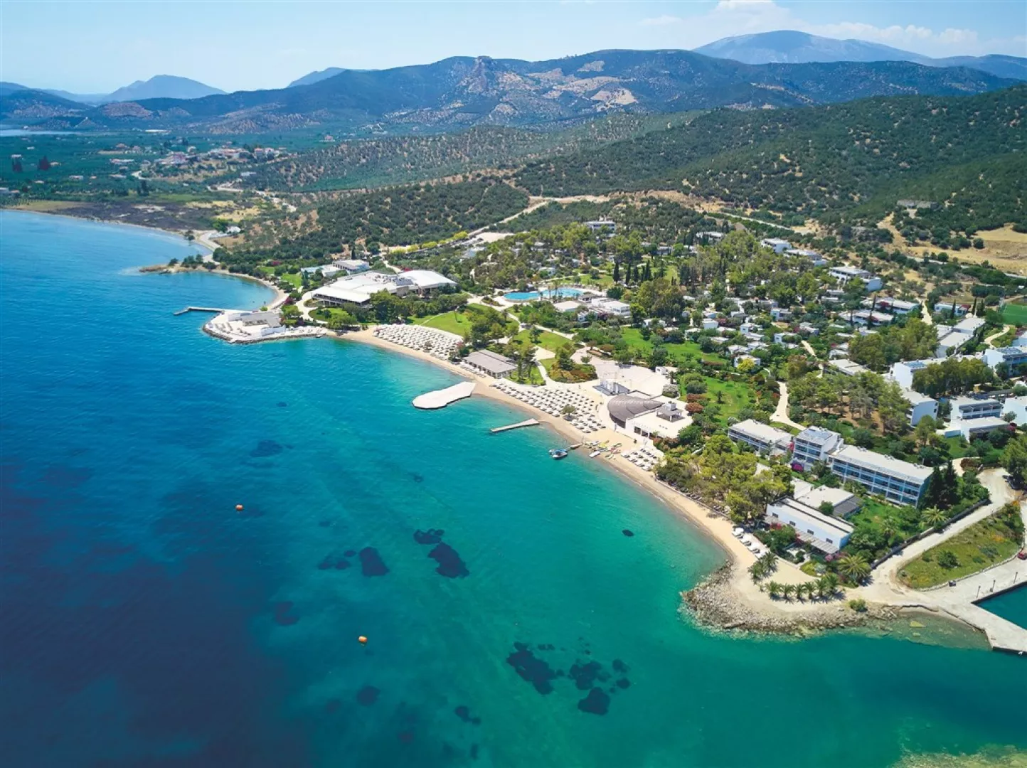 Na pobreží Thermisie, v srdci malebného regiónu Argolida, sa rozprestiera Hydra Beach Resort, elegantný päťhviezdičkový komplex, ktorý spája prírodnú krásu Peloponézu s komfortom moderného rezortu. Súkromné pláže s jemným pieskom, priezračne čisté more a panoramatický výhľad na ostrov Hydra vytvárajú prostredie, ktoré dýcha pokojom, harmóniou a gréckym šarmom.