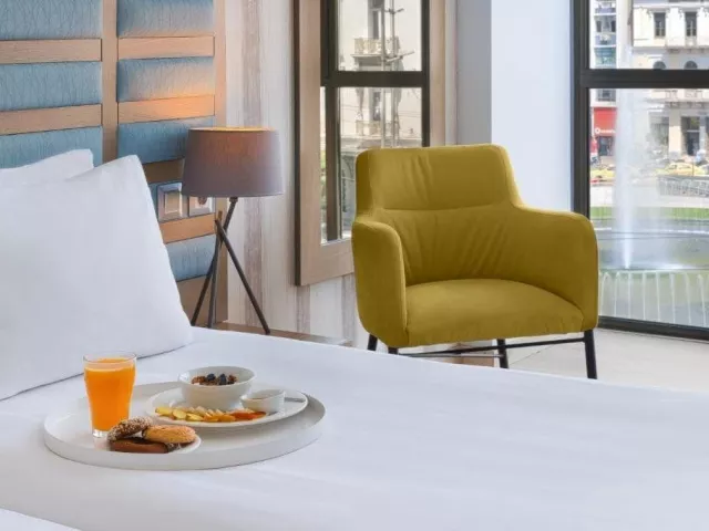 Comfort Pokoj (cca cca 20 m²) je vybavený postelí queen-size nebo dvěma samostatnými lůžky, dětskou postýlkou, minibarem (za poplatek), balkónem, připojením k internetu, trezorem, TV/sat., individuálně regulovatelnou klimatizací. Deluxe Pokoj (Výhled Na Fontánu) nabízí stejné vybavení jako pokoj Comfort, ale je prostornější a poskytuje výhled na fontánu na náměstí. Suite Pro Rodinu nabízí navíc rozkládací pohovku.
