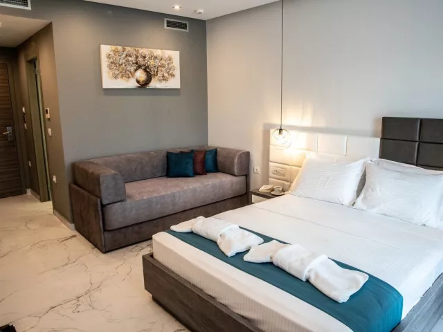 Hotel sa nachádza v blízkosti pláže a je v pešej vzdialenosti od reštaurácií, barov, taverien a obchodíkov. Najbližšie mestečko Kalithea je vzdialené približne 2 km, zatiaľ čo letisko v Thessalonikách je vzdialené 74 km.