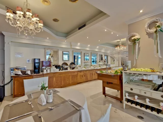 Raňajky sú podávané formou bufetu od 08:00 do 10:00. Možnosť rezervácie polpenzie, ktorá zahŕňa aj večere formou bufetu.