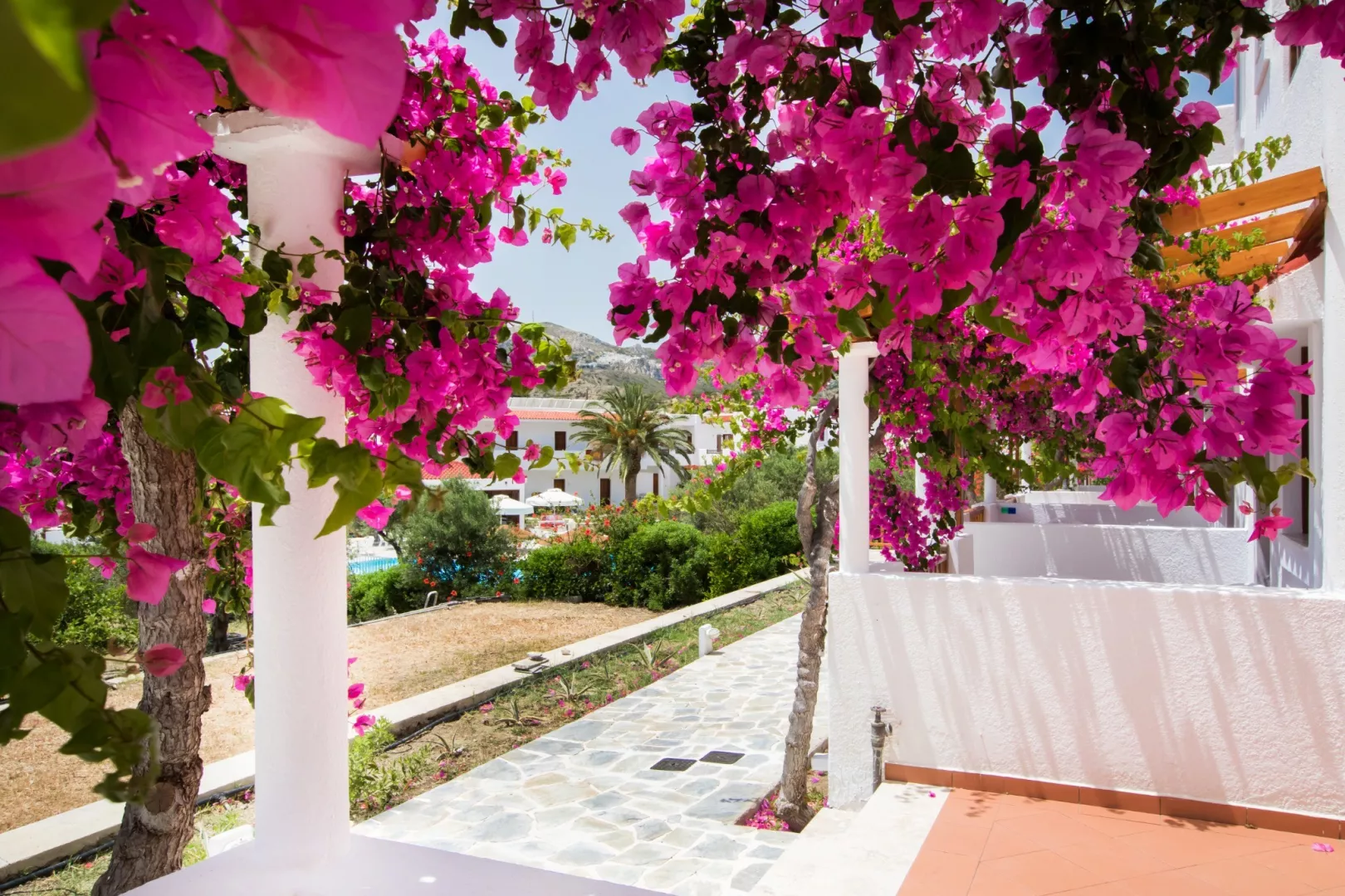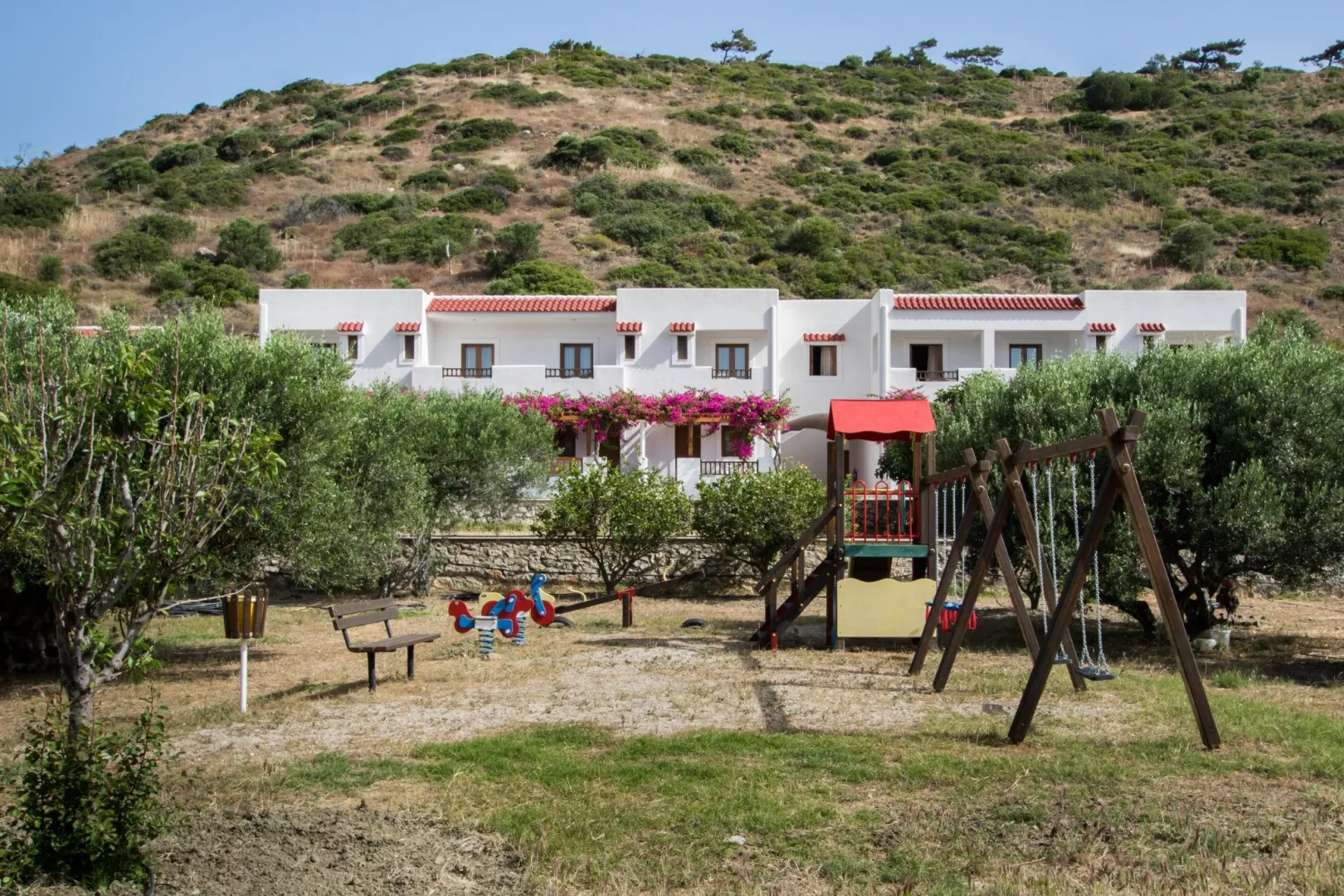 v letovisku Pigadia • cca 350 m od pláže • cca 15 minút chôdze od centra • v blízkosti obchody a reštaurácie • prístav cca 1,5 km • cca 15 km od letiska