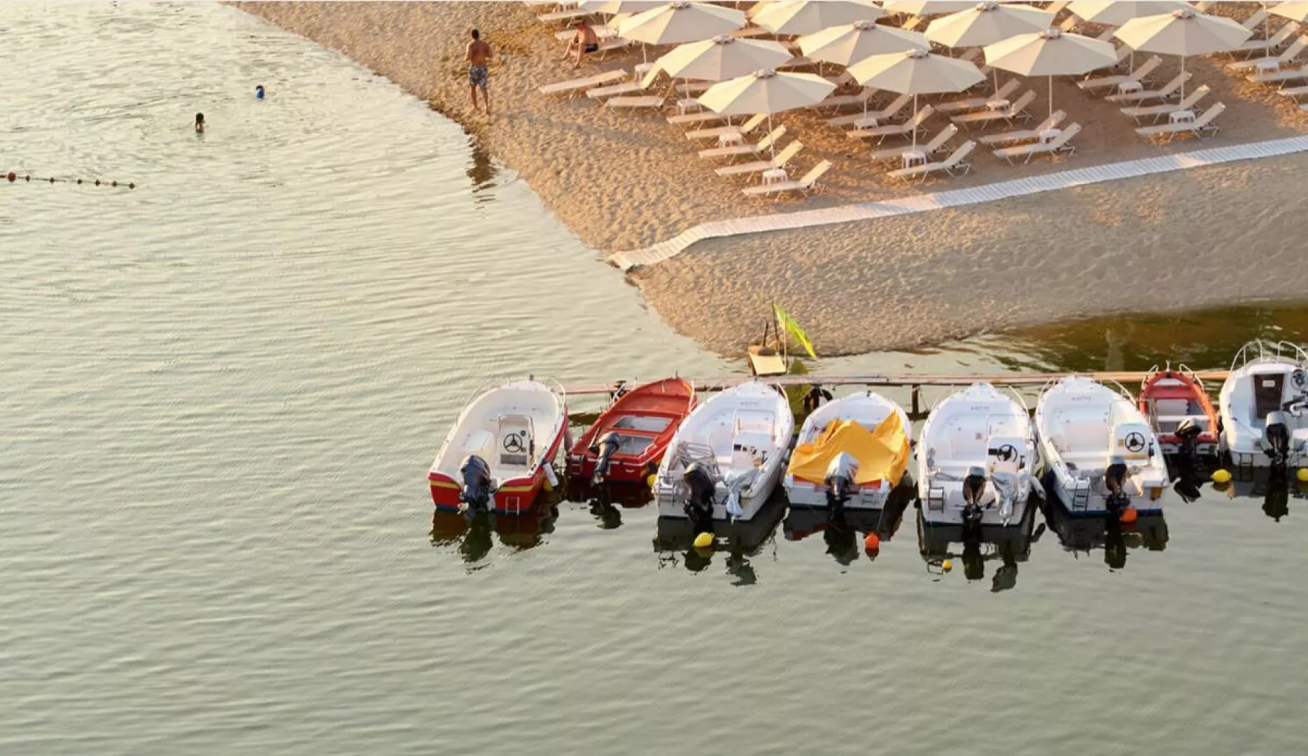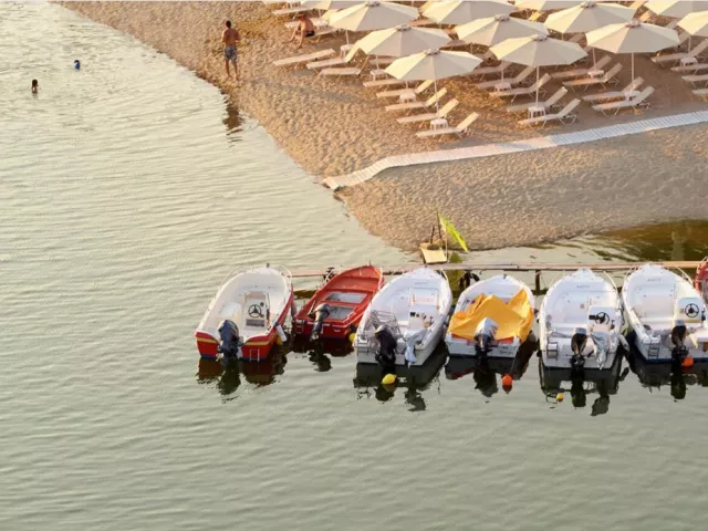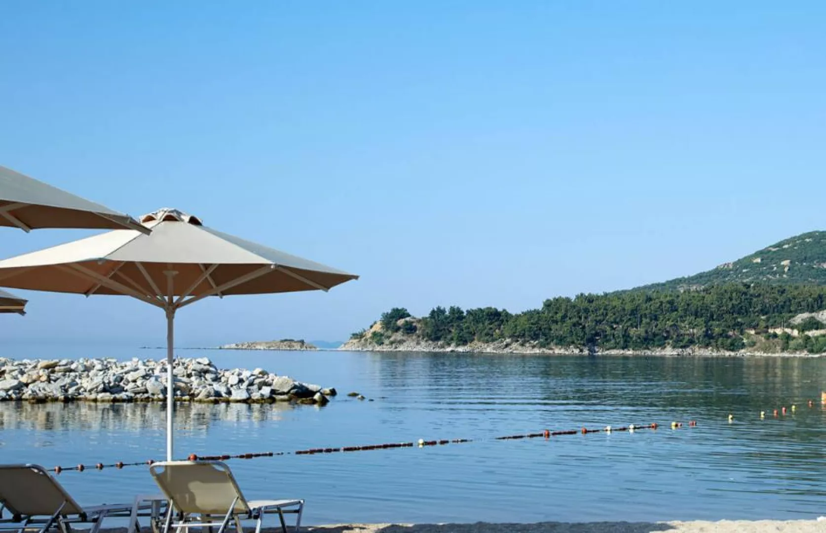 Piesočná, lehátka a slnečníky za poplatok.