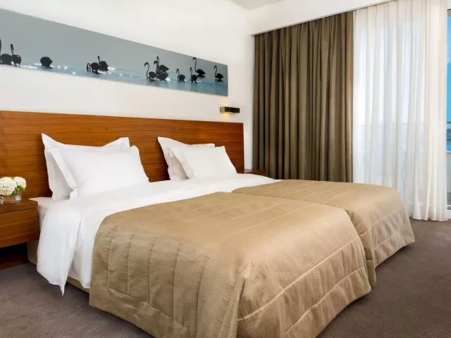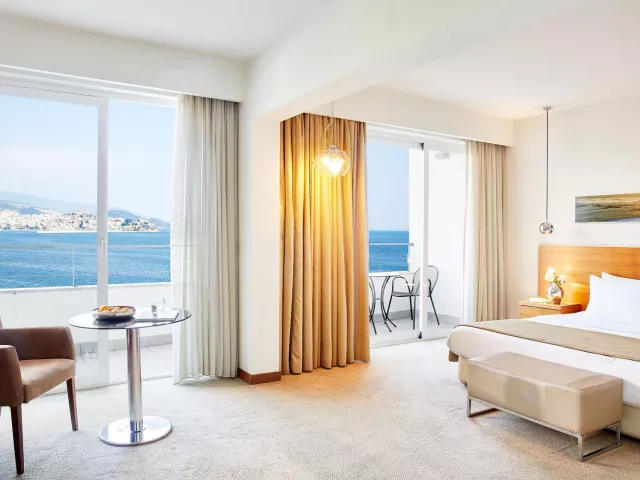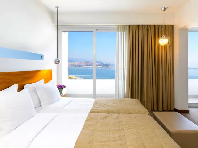 Dvojlôžková izba, Výhľad mora: klimatizácia (zdarma), Wi-Fi (zdarma), TV so satelitným príjmom, kúpeľňa/WC (sušič vlasov), trezor za poplatok, minibar za poplatok, balkón alebo terasa, telefón s priamym vytáčaním, 24 m². Ostatné typy izieb (pokiaľ nie je uvedené inak, majú izby vyššie uvedené vybavenie) Junior Suita, Výhľad mora: 40 m².