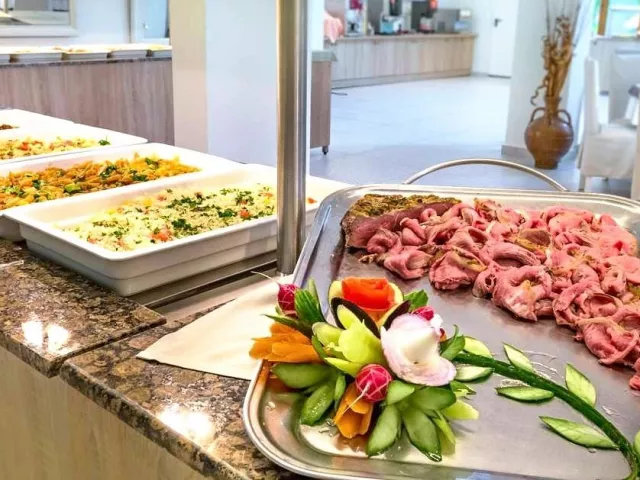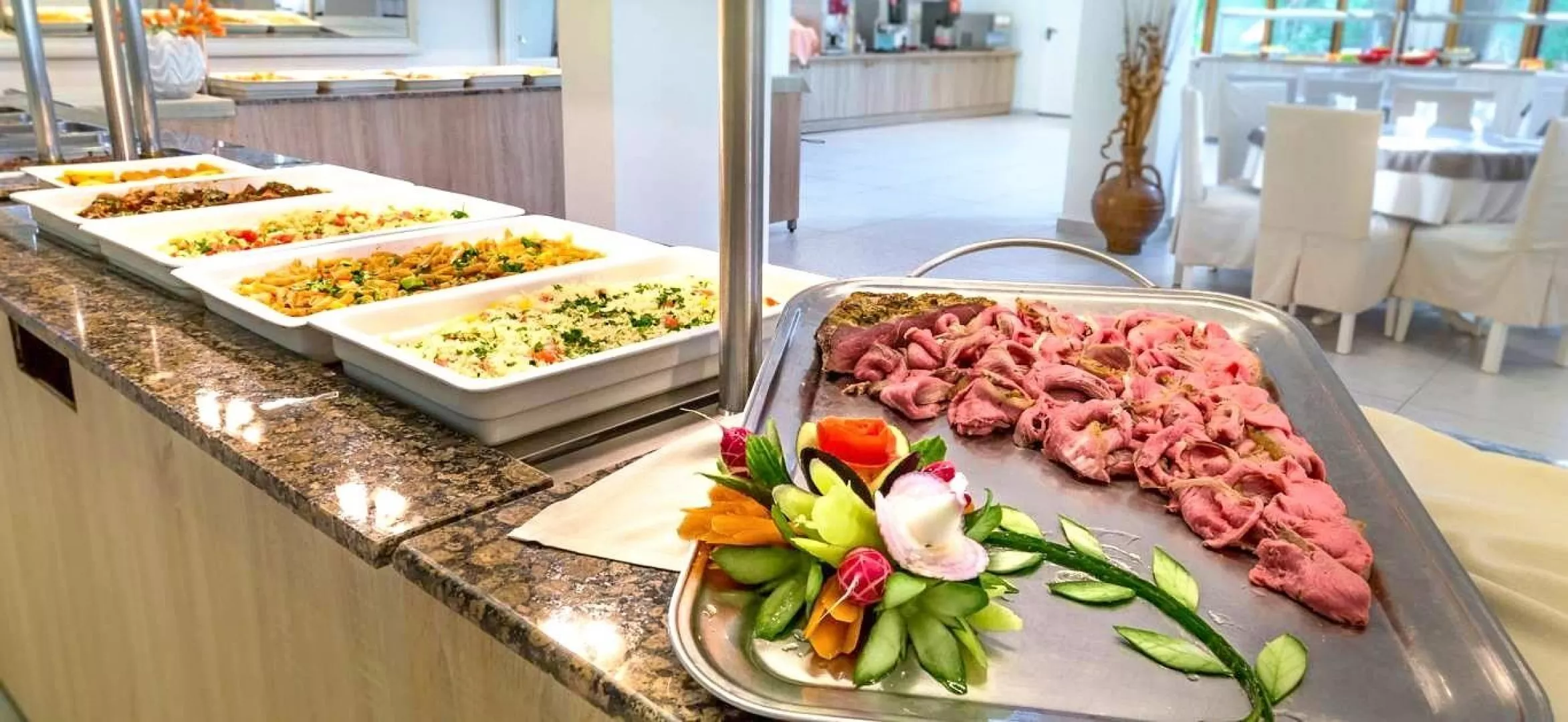 V hoteli je zabezpečené stravovanie formou all inclusive, čo zahrňuje raňajky, obedy a večere v bufetovom štýle. Na prípravu jedál sa používajú čerstvé a kvalitné suroviny, ktoré ponúkajú široký výber pokrmov pre všetky chute.