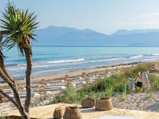 Piesočnato-kamienková pláž s dĺžkou 7 km sa nachádza priamo pri areáli hotela, pričom k dispozícii sú ručníky a slnečníky bez poplatku. Na pláži je aj bar.