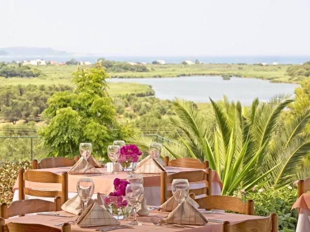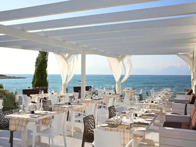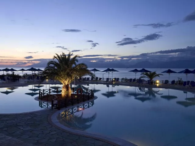 Hotel je umiestnený pri troch malých piesočnato-okruhliakových zálivoch, ktoré sú oddelené málo frekventovanou cestou. Ležadlá a slnečníky sú dostupné za poplatok.