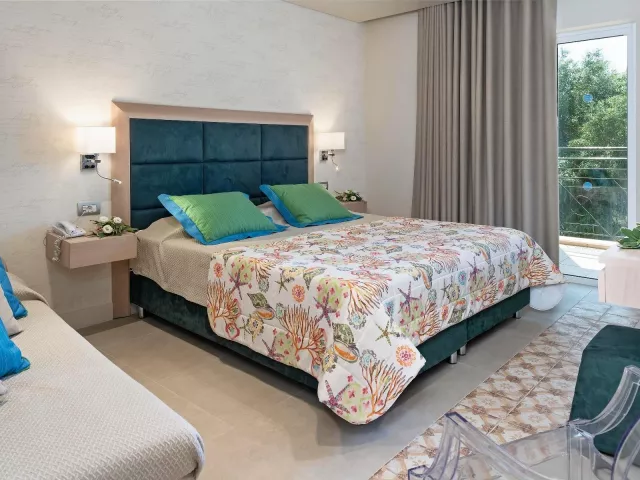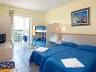 Štandardné izby zahŕňajú kúpeľňu s WC, klimatizáciu, telefón, TV/sat., chladničku a set na prípravu čaju a kávy. Návštevníci dostanú na privítanie fľašu minerálnej vody. Izby s výhľadom na more a zrekonštruované Superior izby sú tiež k dispozícii. Rodinné izby ponúkajú 2 prístelky formou poschodovej postele, zatiaľ čo apartmány sa skladajú z dvoch miestností oddelených posuvnými dverami.