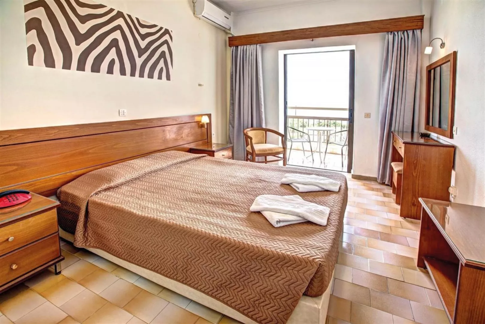 Ubytovanie je zabezpečené v štandardne zariadených 2-lôžkových izbách s možnosťou prístelky. K dispozícii sú izby s bočným alebo priamym výhľadom na more. Izby sú vybavené klimatizáciou, minichladničkou, TV a kúpeľňou s vaňou alebo sprchovým kútom a WC. Každá izba disponuje balkónom alebo terasou s posedením a wifi pripojením.