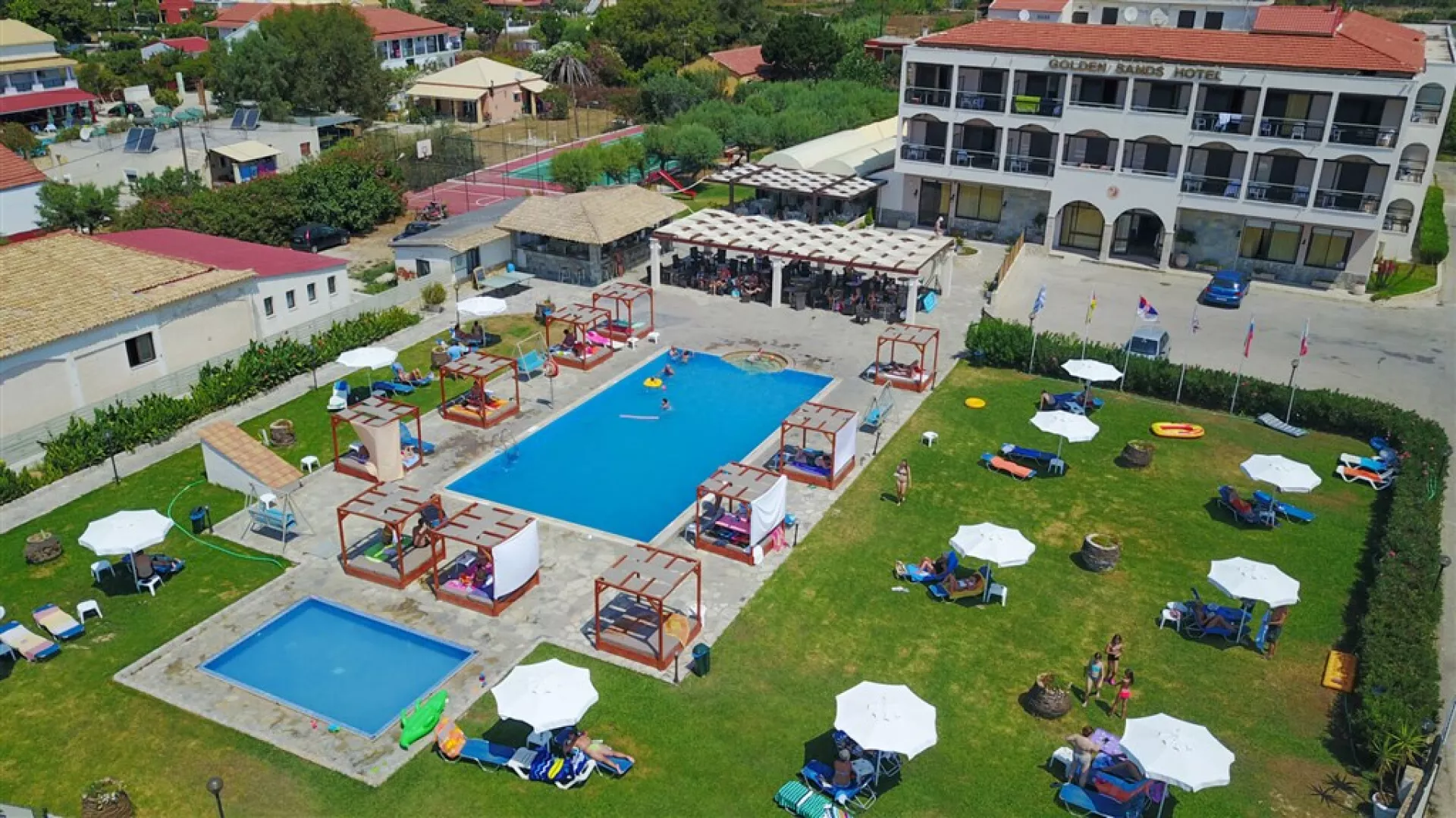 Zažite nezabudnuteľnú dovolenku v menšom rodinnom hoteli, ktorý ponúka dokonalú oázu pokoja v srdci typického gréckeho letoviska. Hotel Golden Sands je pomenovaný po neďalekej známej „zlatej“ piesočnatej pláži, pýšiac sa krásnymi výhľadmi na pokojné pobrežie a skvelou polohou len pár krokov od mora. Je to dobrá voľba pre tých, ktorí chcú zažiť príjemný oddych a túžia po cenovo dostupnom all inclusive hoteli v autentickom prostredí očarujúceho ostrova Korfu.