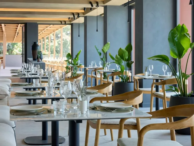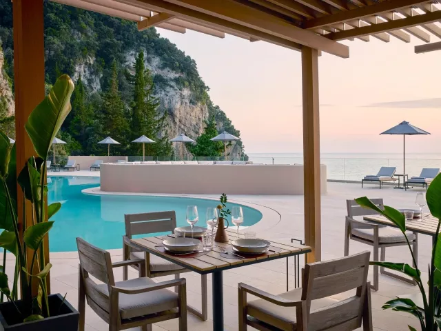All inclusive Cocura - hlavná reštaurácia v stredomorskom štýle (raňajky, obedy, večere formou bufetu) Lucáta - talianska reštaurácia (raňajkový bufet, obed a večera formou ála carte) Nafs - ála carte reštaurácia s gréckou a stredomorskou kuchyňou (raňajky a večere, cez deň tiež snacky, nápoje a koktaily) Laru / Nafs - bary pri bazéne (nápoje a koktaily, snacky, hudba) Boséto - strešný koktail bar Phéa - bar na pláži (nápoje a koktaily s obmedzenou ponukou snackov) Sinar - lobby bar Cadúna - bar prístupný aj verejnosti (za poplatok) Široká ponuka koktailov a nápojov medzinárodnej výroby Výber z 300 lokálnych aj medzinárodných značiek vína Možnosť čerpania all inclusive aj po prevedení check out Špeciálne diéty je nutné uviesť do poznámky a po príchode nahlásiť na recepcii