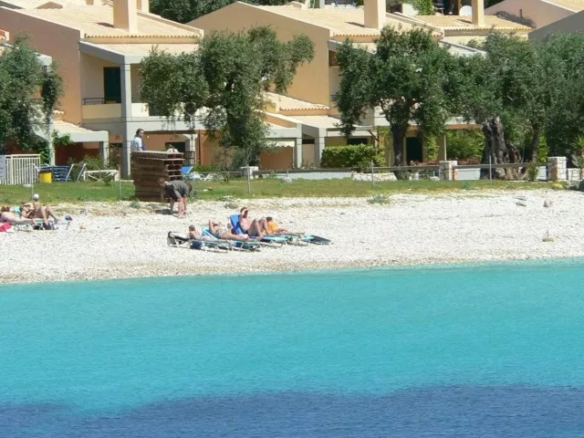 Okruhliaková pláž Barbati leží približne 150 m od hotela, pričom lehátka a slnečníky sú k dispozícii za poplatok od miestnych poskytovateľov služieb.