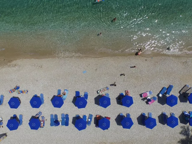známa piesočnato-kamienková pláž Barbati priamo pred hotelom ležadlá a slnečníky za poplatok