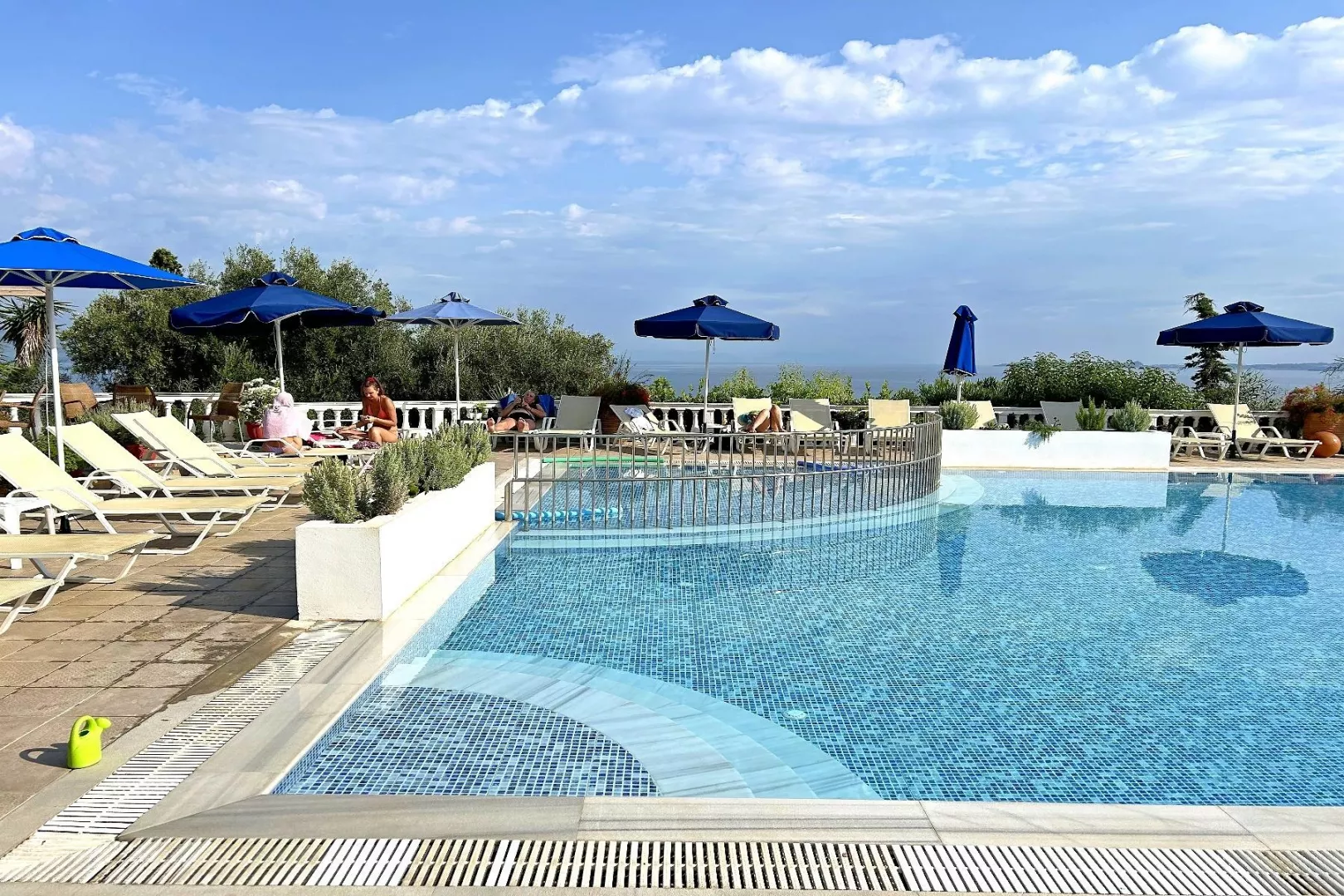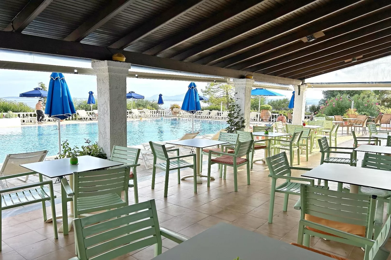 Priamo pod hotelom sa nachádza drevené mólo s prístupom po schodoch. Vstup do mora je zabezpečený rebríkom a nachádzajú sa tu slnečníky a ležadlá zdarma. Kamienková pláž Barbati sa nachádza 2 km od hotela, bezplatná kyvadlová doprava na pláž je k dispozícii dvakrát denne.
