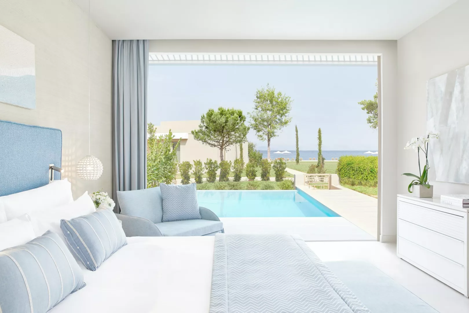 Oba rezorty sa nachádzajú pri súkromnej piesočnatej pláži s pozvoľným vstupom do mora. K dispozícii sú ležadlá, slnečníky a osušky zdarma, pričom v Ikos Dassia je vyčlenená časť pláže len pre dospelých.