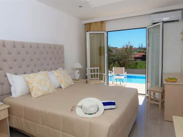 Štýlový hotel pre dospelých sa nachádza v unikátnom prírodnom prostredí priamo pri nádhernej pieskovej pláži. Užite si pokojnú dovolenku s nádherným výhľadom na Iónske more, len pár minút od mestečka Kavos.