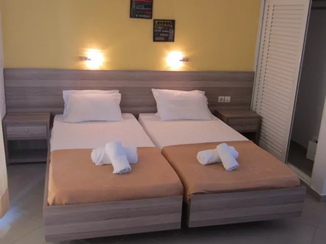 Štúdio Standard Twin: Izba s rozlohou 25 m² ponúka 2 jednolôžkové postele a vlastné sociálne zariadenie (kúpeľňa so sprchou, fénom a WC). Izba je vybavená kuchynským kútom (varič, minichladnička, rýchlovarná kanvica), klimatizáciou, trezorom (za poplatok), bezplatným WiFi a balkónom s výhľadom na more alebo záhradu.