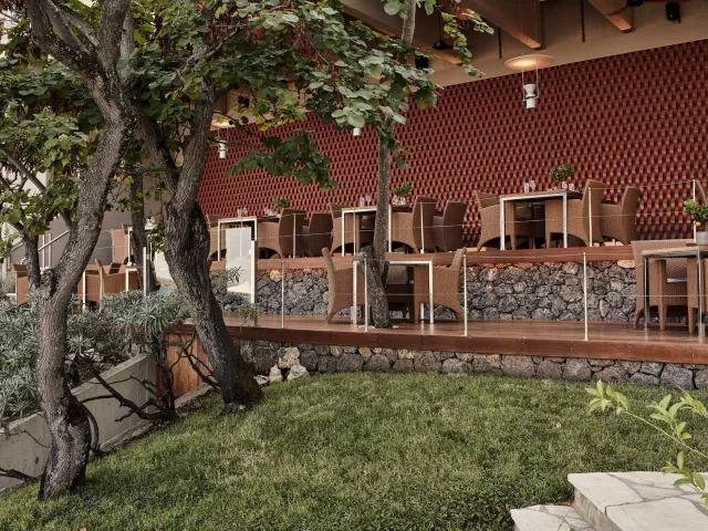 Hotel sa skladá z hlavnej budovy a dvoch ďalších jednoposchodových budov. Vybavenie zahŕňa recepciu, reštaurácie, bar, spoločenskú miestnosť s TV/sat., konferenčné centrum, kaderníctvo a obchod so suvenírmi. V záhrade sa nachádza bazén s morskou vodou, terasa s ležadlami a bar pri bazéne.