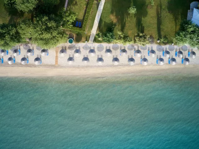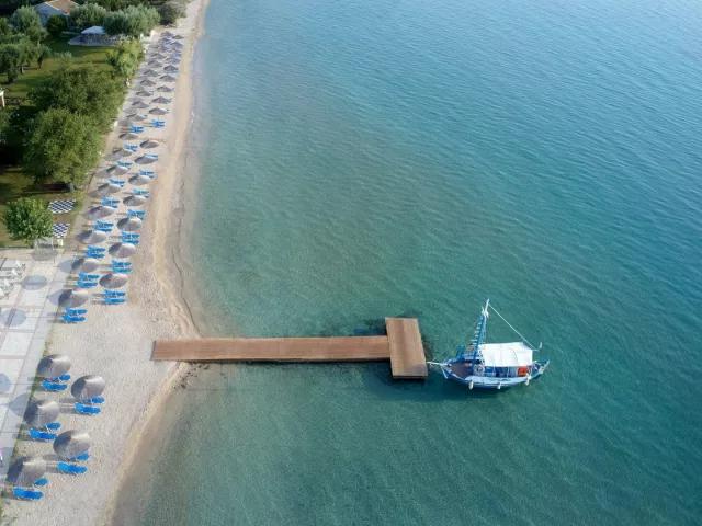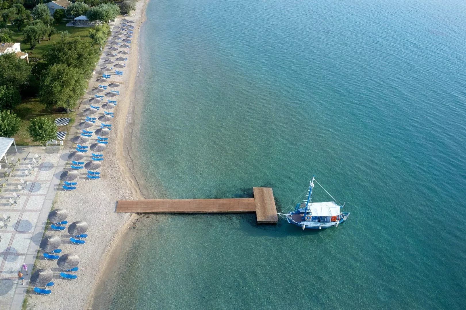 Piesočnatá pláž s okruhliakmi a pozvoľným vstupom do vody sa nachádza len 100 m od hotela. K dispozícii sú ležadlá a slnečníky zdarma, ako aj snack bar pri pláži.