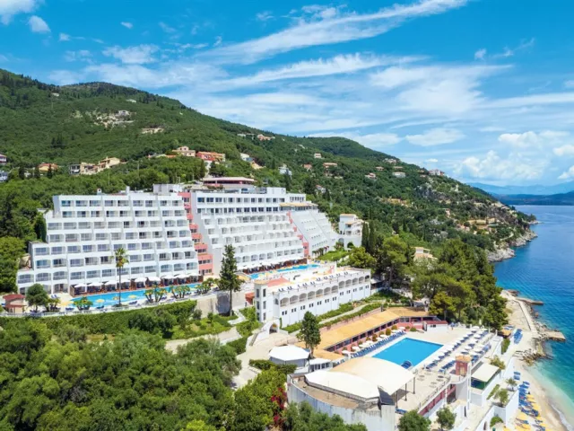 Kaskádovito postavený rezort leží v pokojných podmienkach, približne 500 m od letoviska Nissaki na východnom pobreží ostrova Korfu. Piesočnatá pláž s prímesou drobných kamienkov a pozvoľným vstupom do mora sa nachádza priamo pod hotelom, prístupná po schodoch, so slnečníkmi a ležadlami bez poplatku. Rezort je vzdialený približne 25 km od hlavného mesta a letiska.