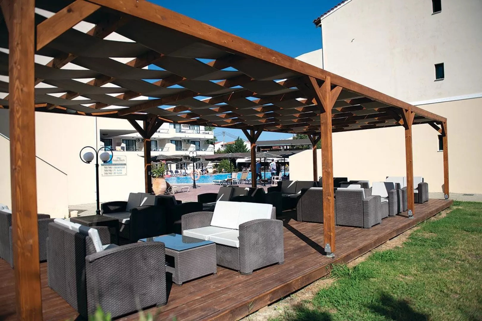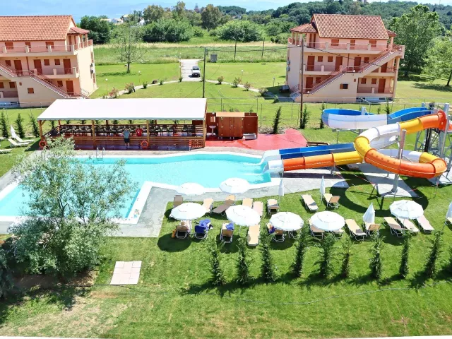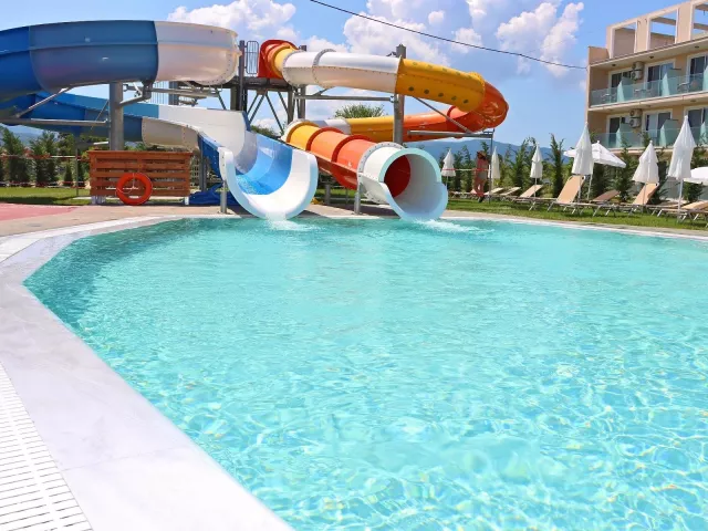 Hotel pozostáva z 8 budov a ponúka výťah, vstupnú halu s recepciou, reštauráciu, lobby bar a TV miestnosť. Vonku sú k dispozícii 3 bazény, detský bazén, tobogán, terasa s lehátkami a slnečníkmi zdarma, ako aj bary pri bazéne.