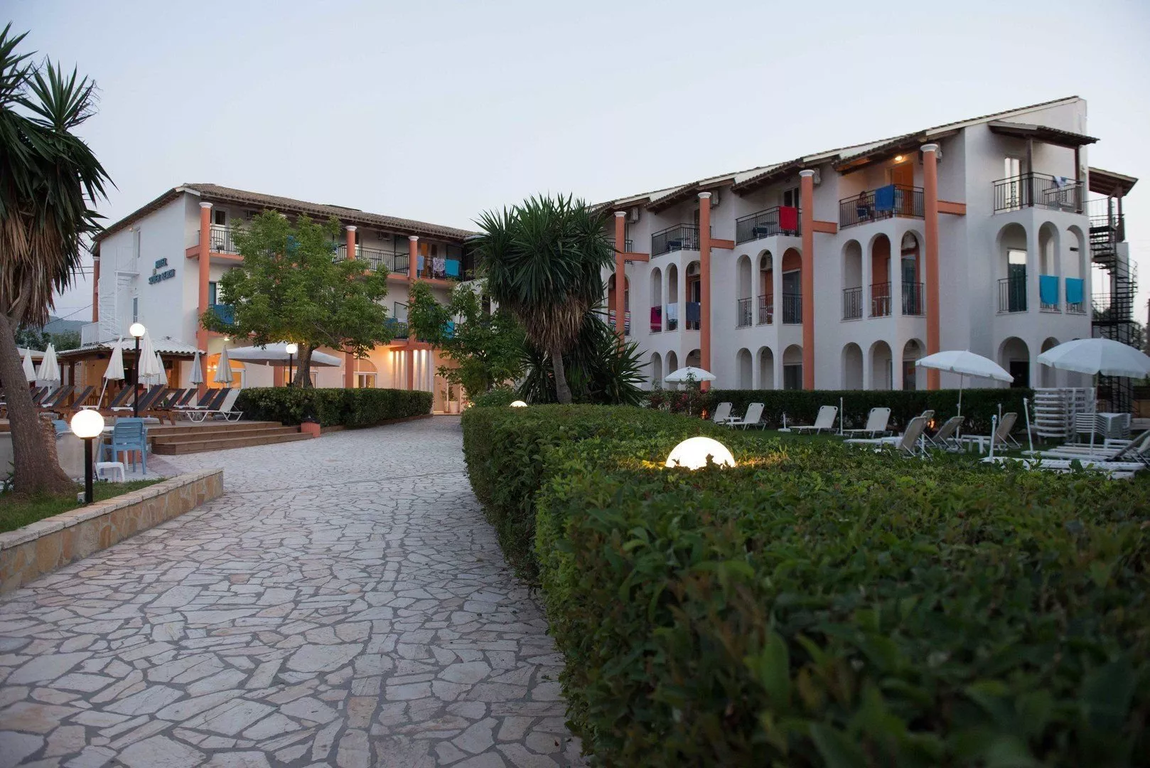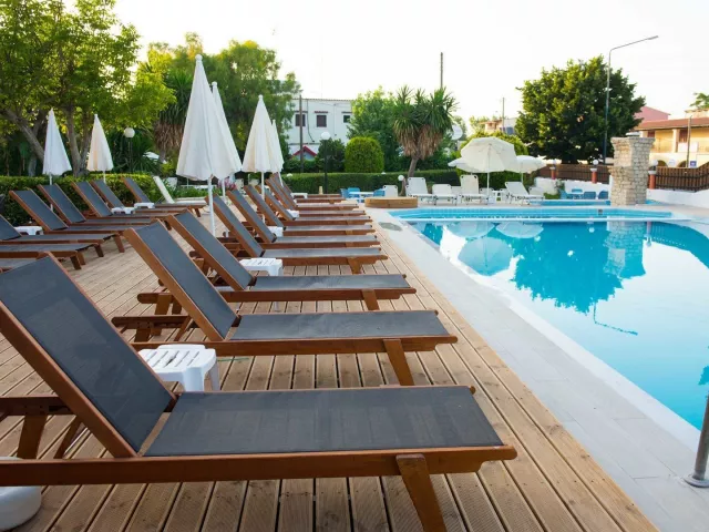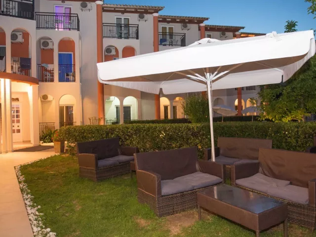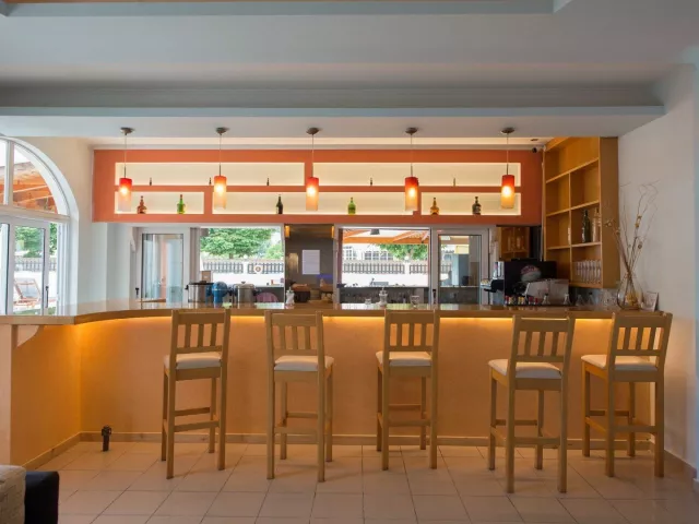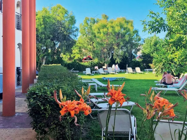 Hotel disponuje 90 izbami, vstupnou halou s recepciou, lobby, reštauráciou, barom, kaviarňou a TV miestnosťou. K dispozícii je výťah aj požičovňa áut. V záhrade sa nachádza bazén s barom, pričom ležadlá a slnečníky pri bazéne sú zadarmo. Wi-Fi pripojenie je dostupné za poplatok v areáli hotela.