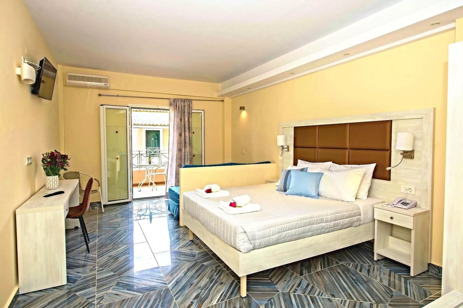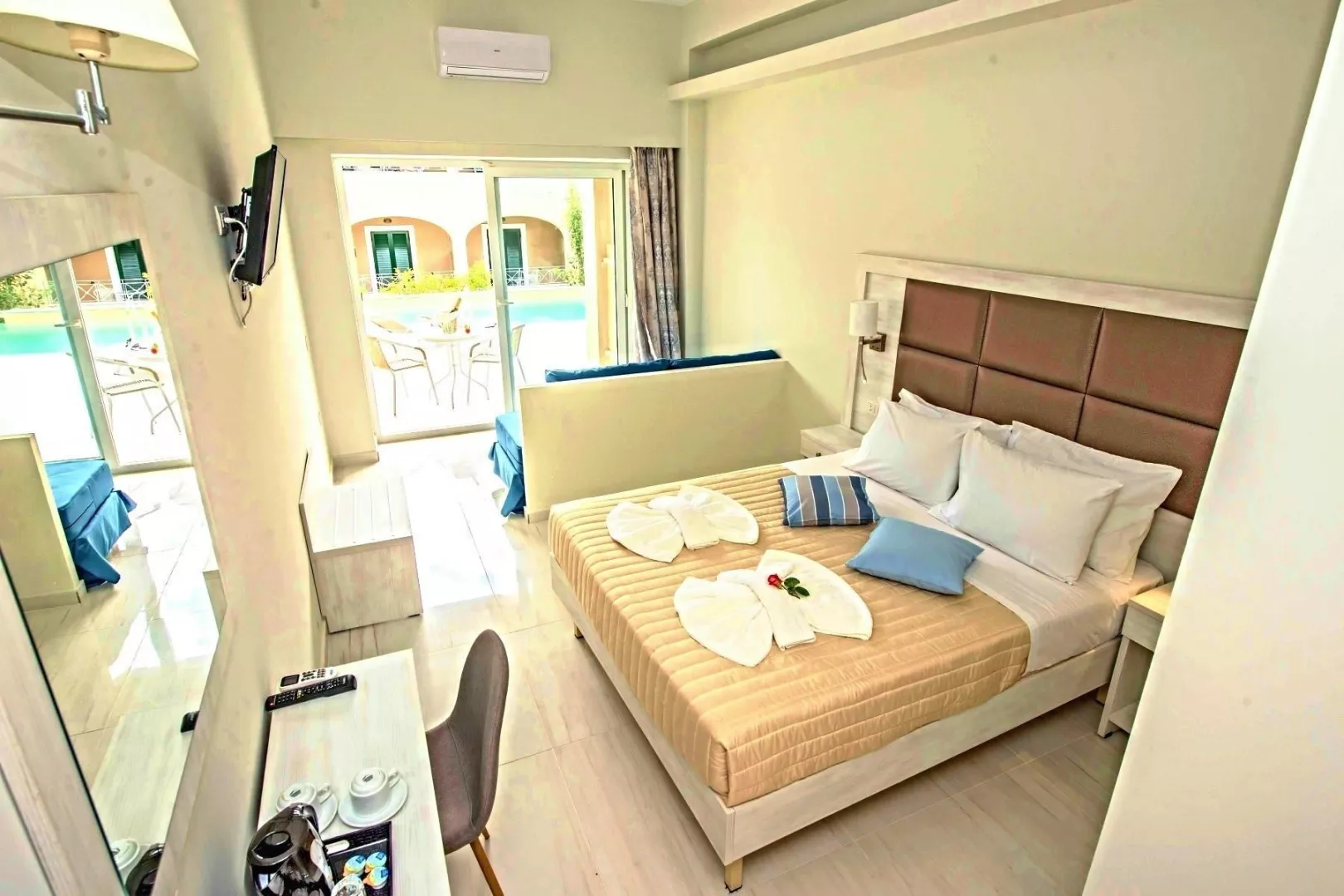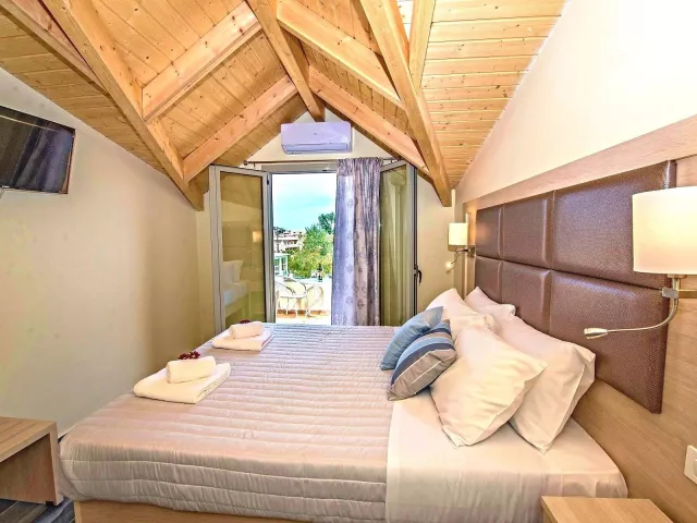 Dvojlôžková izba, Deluxe, výhľad do záhrady : kúpeľňa/WC (sušič vlasov), TV/sat, klimatizácia, chladnička, trezor, telefón, rýchlovarná kanvica, balkón/terasa, 18-24m2. Ostatné typy izieb (ak nie je uvedené inak, všetky izby majú vyššie uvedené vybavenie) Rodinná izba, výhľad do záhrady: izba s poschodovou posteľou, 25-30m2. Dvojlôžková izba, Promo, Výhľad do záhrady: menej výhodná poloha v rámci komplexu, obmedzený počet.