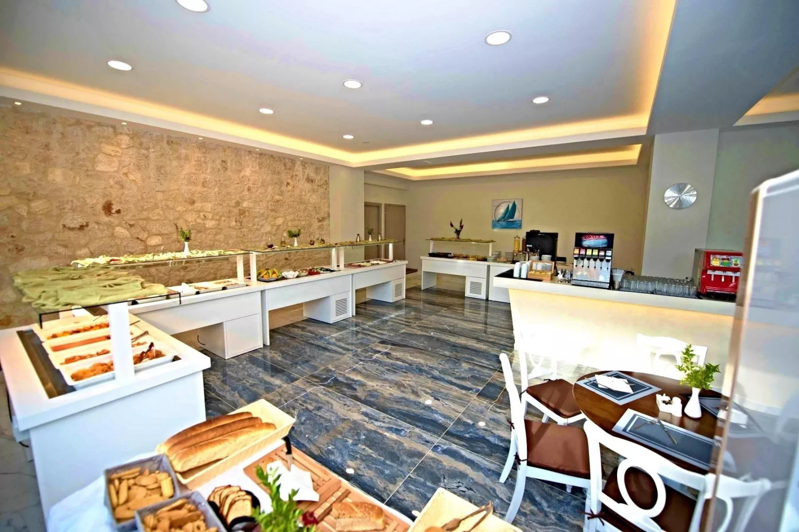 All Inclusive Raňajky (7:30-10:00), obed (12:30-14:30) a večera (19:00-21:30) formou bufetu. Lahké občerstvenie počas dňa (11:00-12:00, 15:00-18:00) Alkoholické a vybrané nealkoholické nápoje miestnej výroby (all inclusive 10:30-22:45) Upozornenie: uvedené časy sú stanovené hotelom a môžu sa zmeniť.