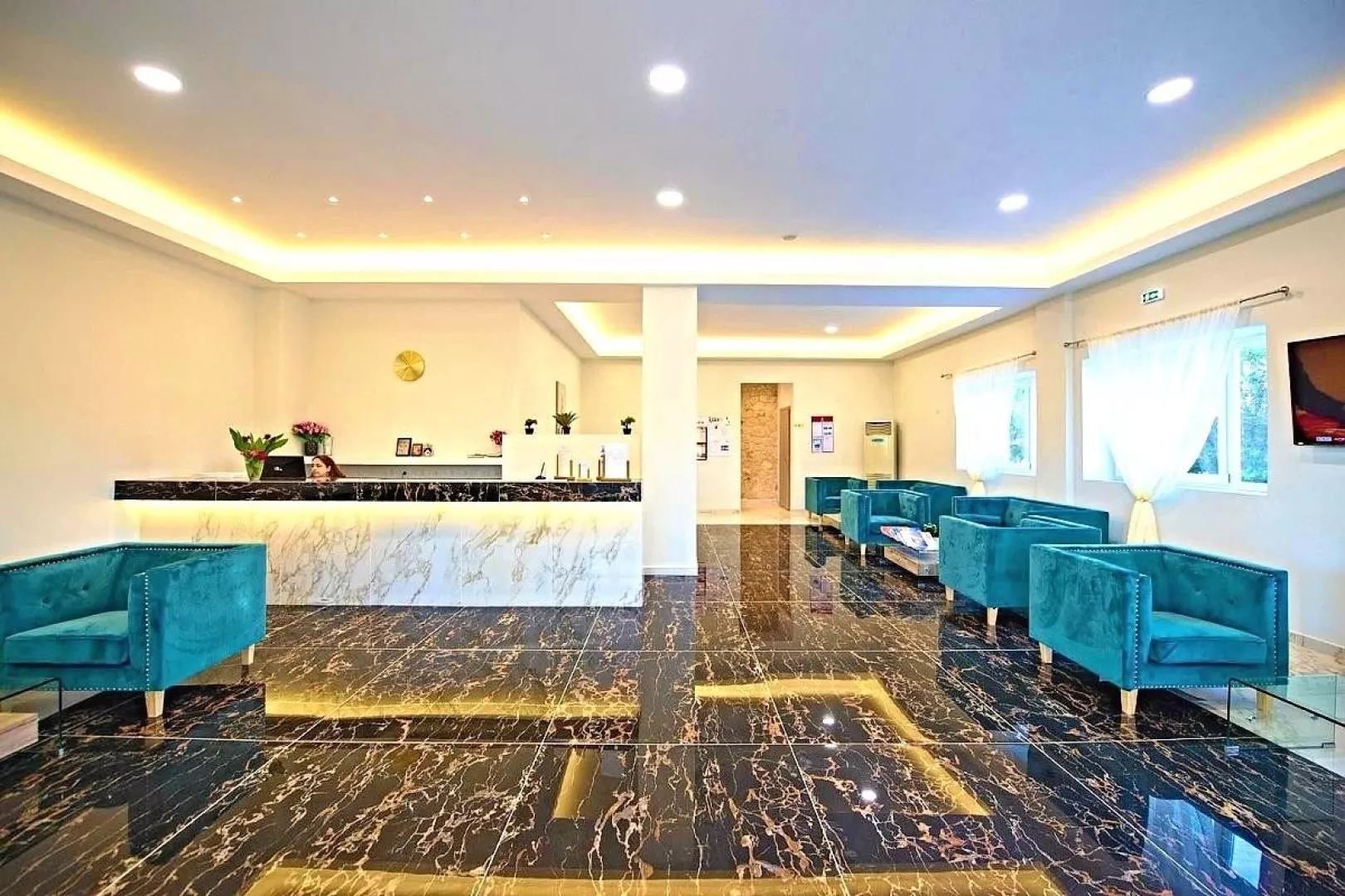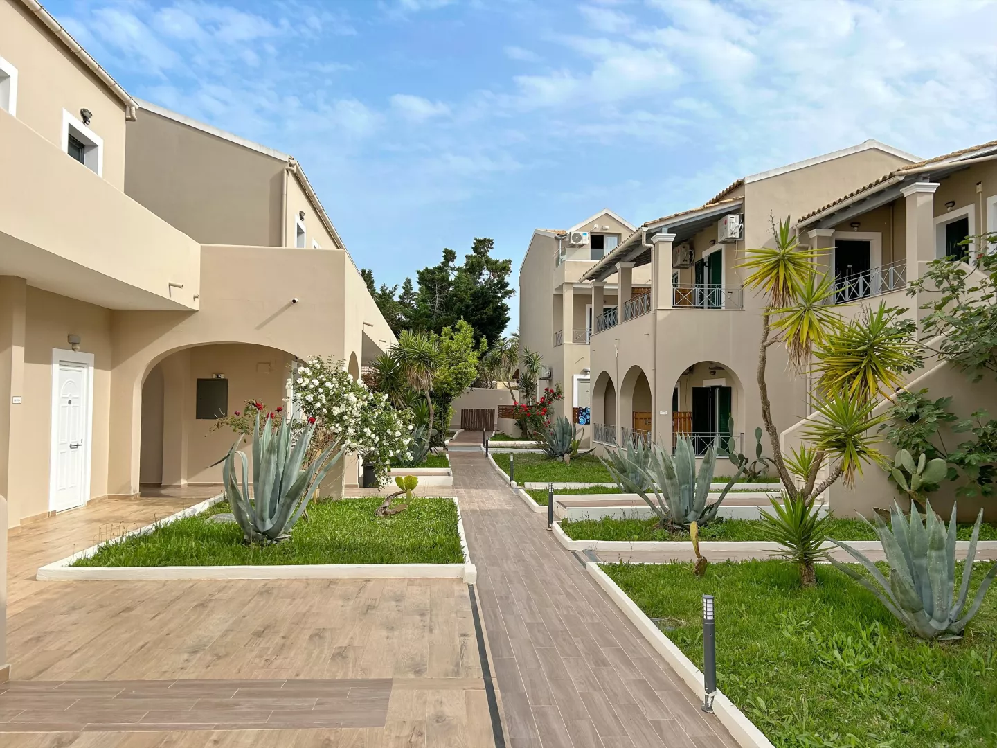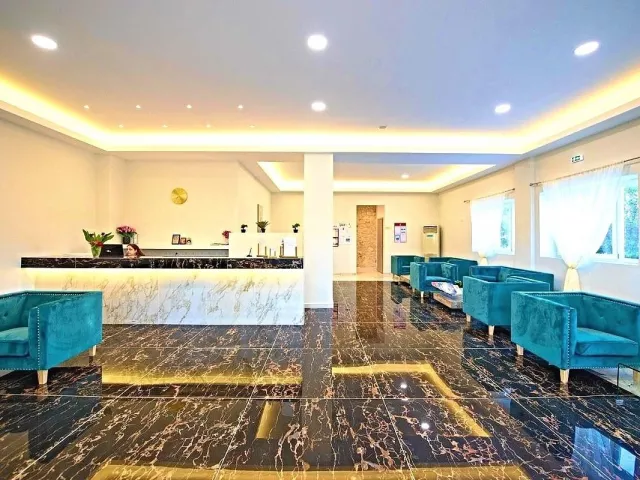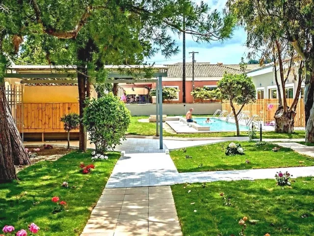Hlavná budova a 10 priľahlých dvojpodlažných budov, 110 izieb, vstupná hala s recepciou, reštaurácia, bar. Vonkajší bazén, bar pri bazéne, terasa s ležadlami a slnečníkmi zdarma.