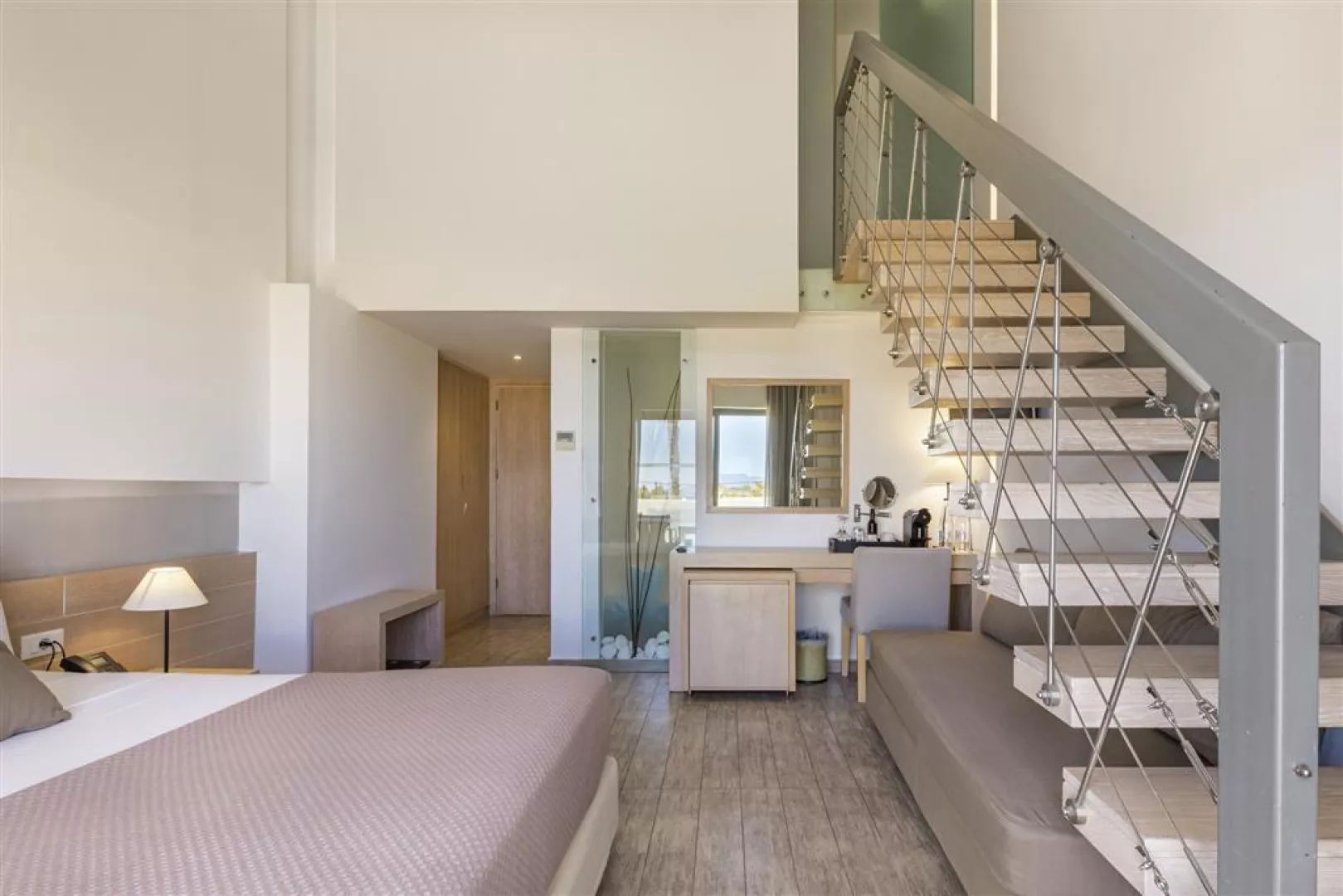 Dvojlôžkové izby sú vybavené individuálne ovládateľnou klimatizáciou, TV/sat., Wi-Fi, minibarom a trezorom. V izbách sa nachádzajú aj balkón alebo terasa. K dispozícii sú izby s výhľadom na more, zdieľaným bazénom a priestranné rodinné izby. Suita je mezonet s oddelenou spálňou na poschodí.