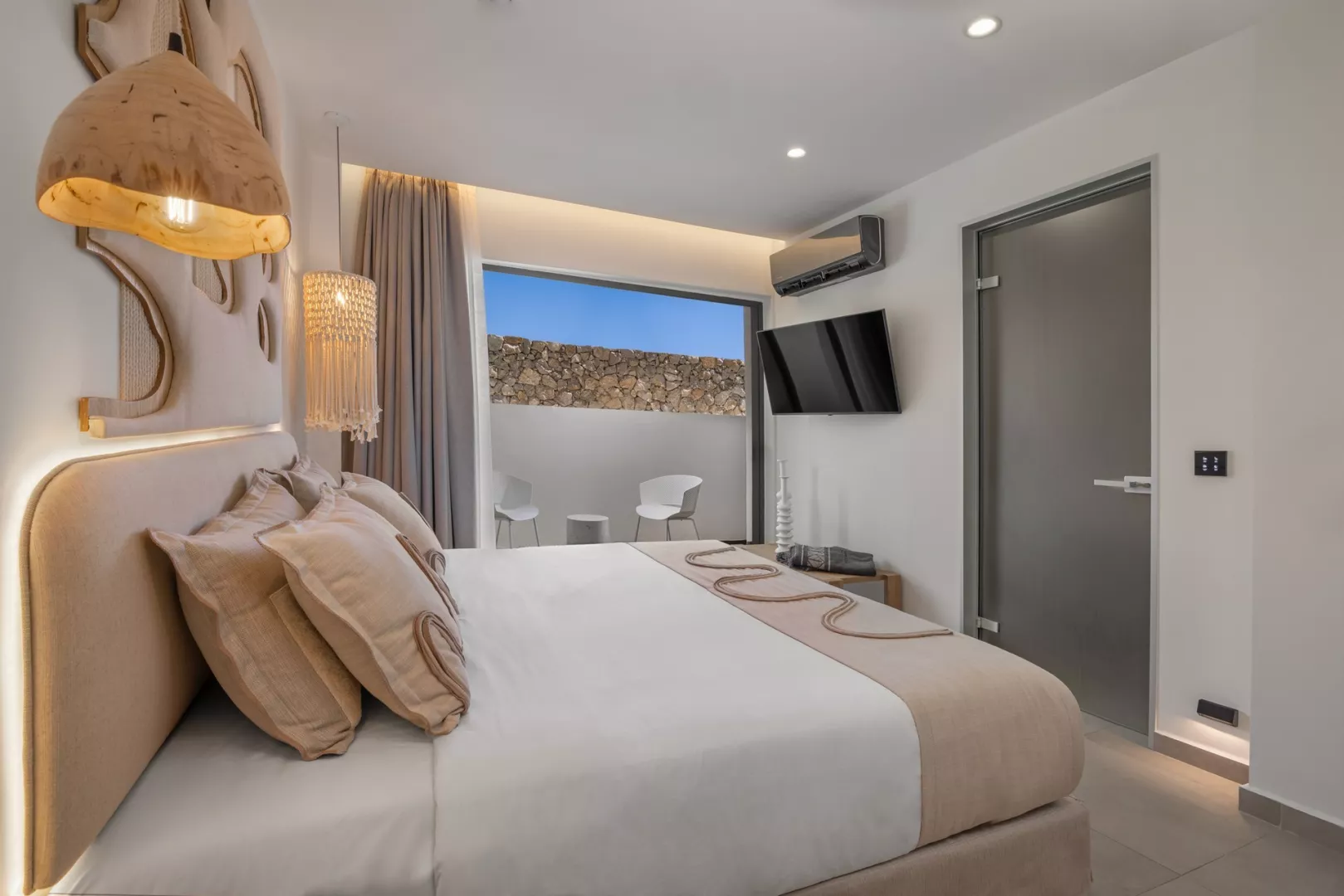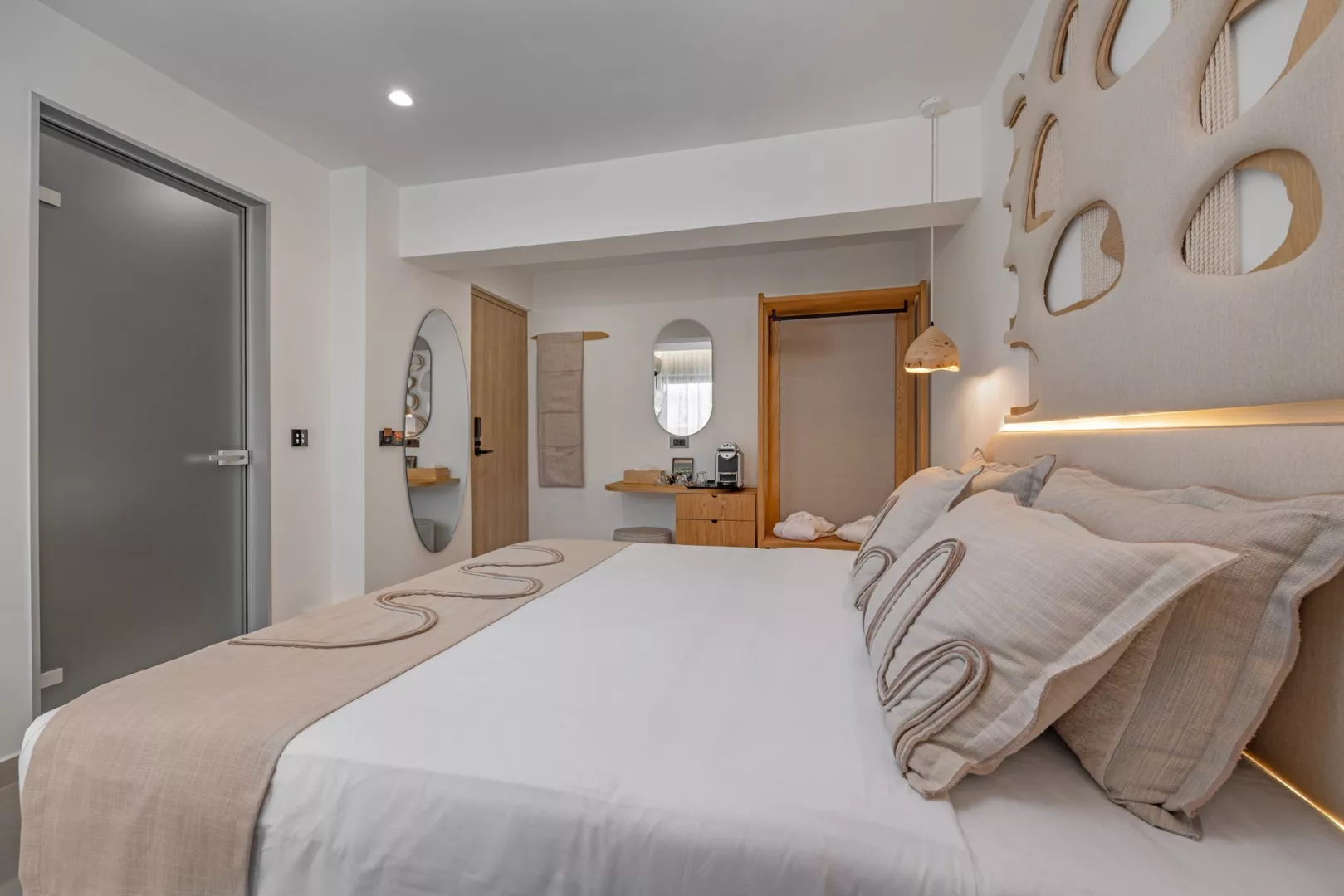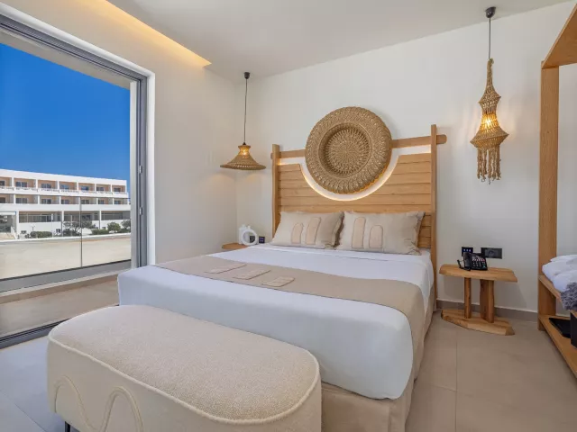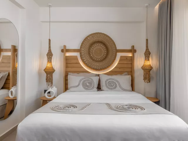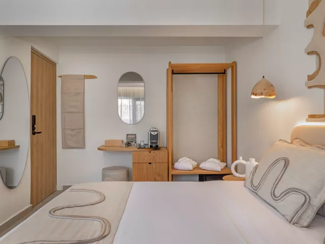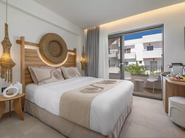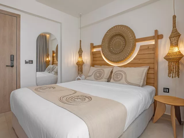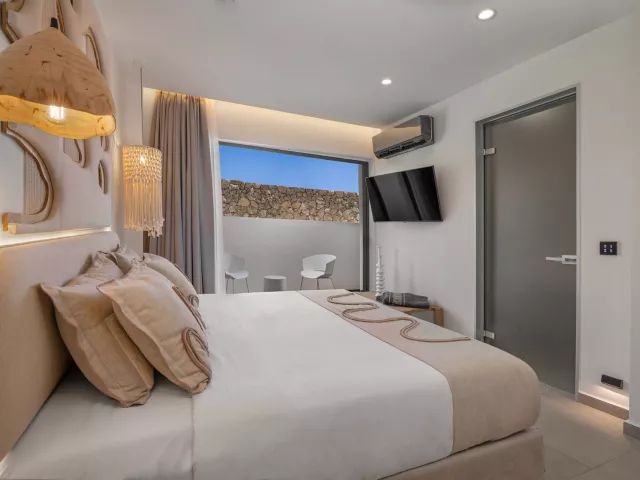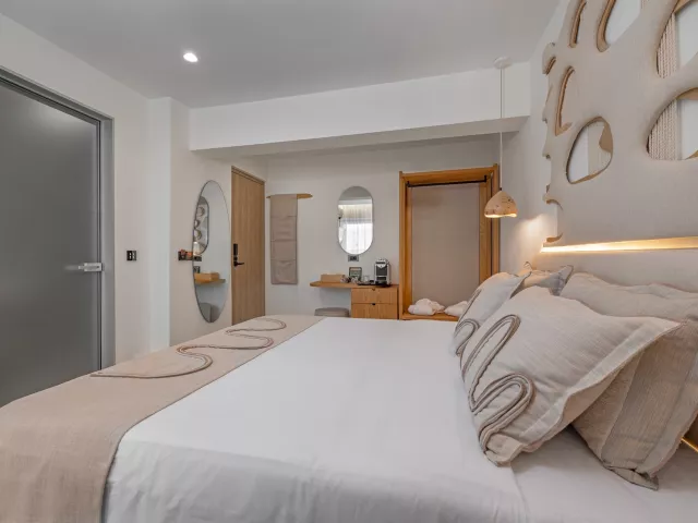Dvojlôžková izba: kúpeľňa, WC (sušič vlasov, župany a papuče), klimatizácia, telefón, trezor, minichladnička, po prílete 2 fľaše vody, TV/sat., set na prípravu kávy a čaju, balkón alebo terasa, 14 m2. Ostatné typy izieb (pokiaľ nie je uvedené inak, majú izby vyššie uvedené vybavenie) Dvojlôžková izba, Deluxe: priestrannejšie, 19-20 m2. Dvojlôžková izba, Deluxe, priamy vstup do bazéna : priestrannejší, priamy vstup do bazéna, 19-20 m2. Dvojlôžková izba, Deluxe, Jacuzzi: priestrannejšie, jacuzzi na terase, 19-20 m2.