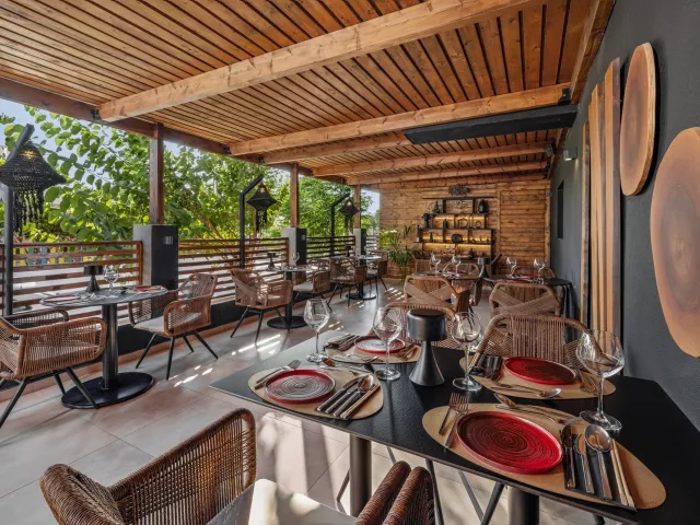 Vstupná hala s recepciou, výťah, reštaurácia, reštaurácia a la carte. Vonku bazén, terasa na slnenie, ležadlá a slnečníky zadarmo, osušky (depozit), bar.