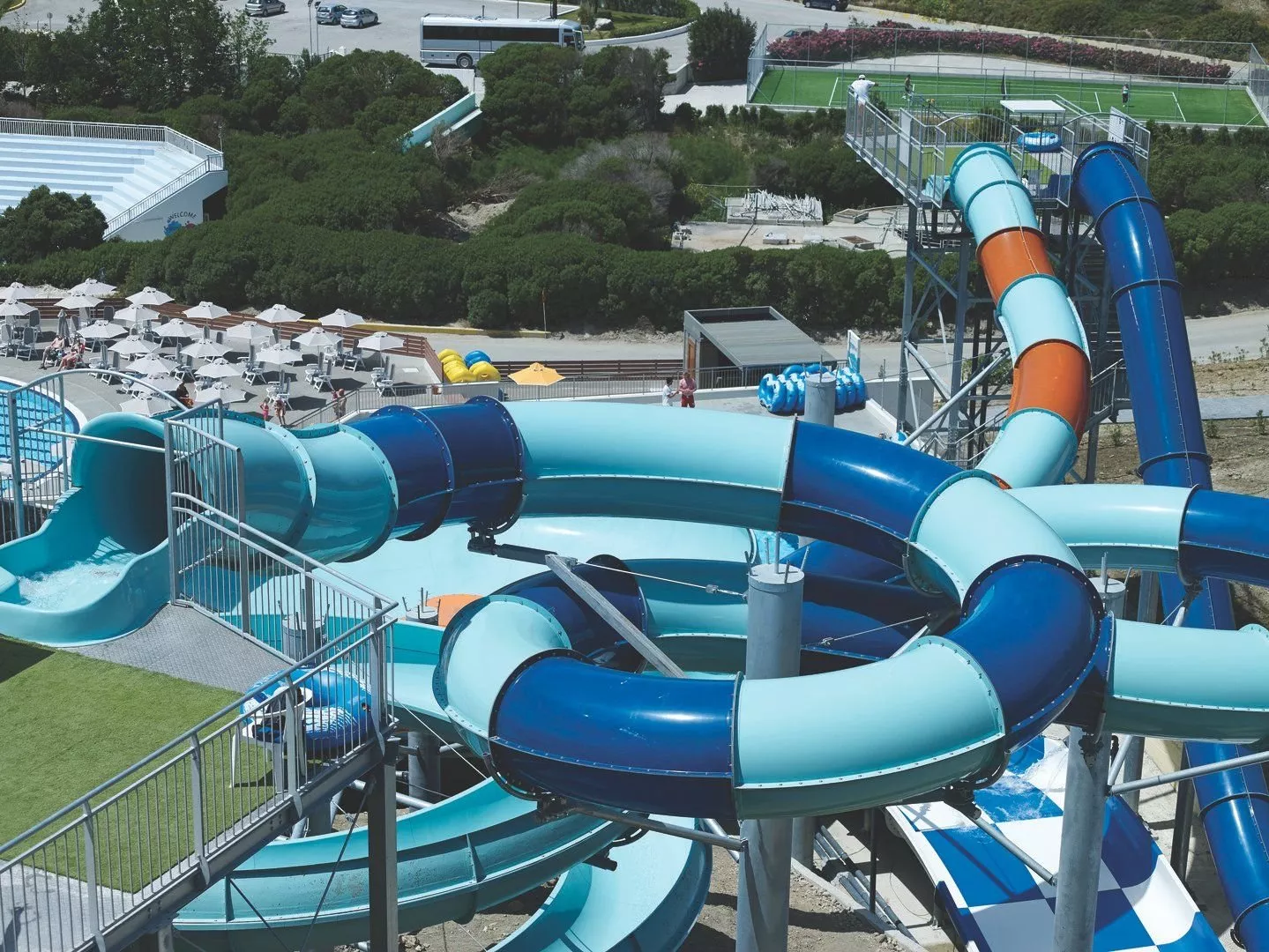 Hotel ponúka 24-hodinovú recepciu, reštauráciu, lobby reštauráciu à la carte na pláži (za poplatok, len na obedy s predchádzajúcou rezerváciou), pool bar a snack bar vo vodnom parku (za poplatok). Wi-Fi je zdarma a k dispozícii je aj parkovanie a minimarket. Hostia môžu využiť prenájom áut/motocyklov, 8 bazénov a detský bazén so slanou vodou. Pri bazénoch sú slnečníky a ležadlá zdarma. Aquapark je otvorený od 10:30 do 17:30. Medzi športové a zábavné aktivity patrí tenisový kurt, fitness, plážový volejbal, multifunkčné ihrisko, stolný tenis, detské ihrisko a miniklub pre deti vo veku 4-12 rokov. Animačné programy sú k dispozícii, pričom niektoré aktivity ako biliard, minigolf a vodné športy na pláži sú za poplatok.