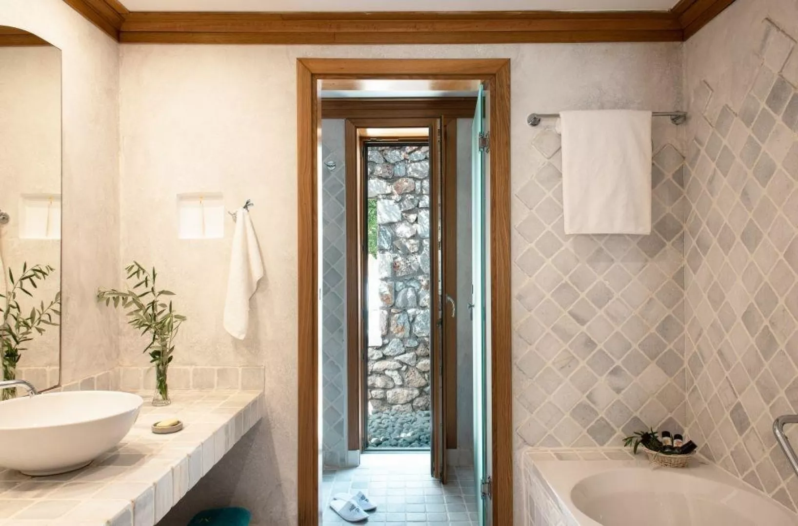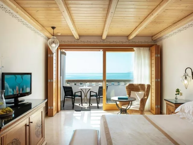 Izby sú vybavené klimatizáciou, TV/sat., trezorom, minibarom s denne doplňovanými nealkoholickými nápojmi a pivom, fľašou vína po prílete, a raňajkami na balkóne alebo terase. Rôzne typy izieb ponúkajú rôzne výhľady a vybavenie, vrátane izieb s privátnymi bazénmi, rodinných bungalovov a mezonetu.