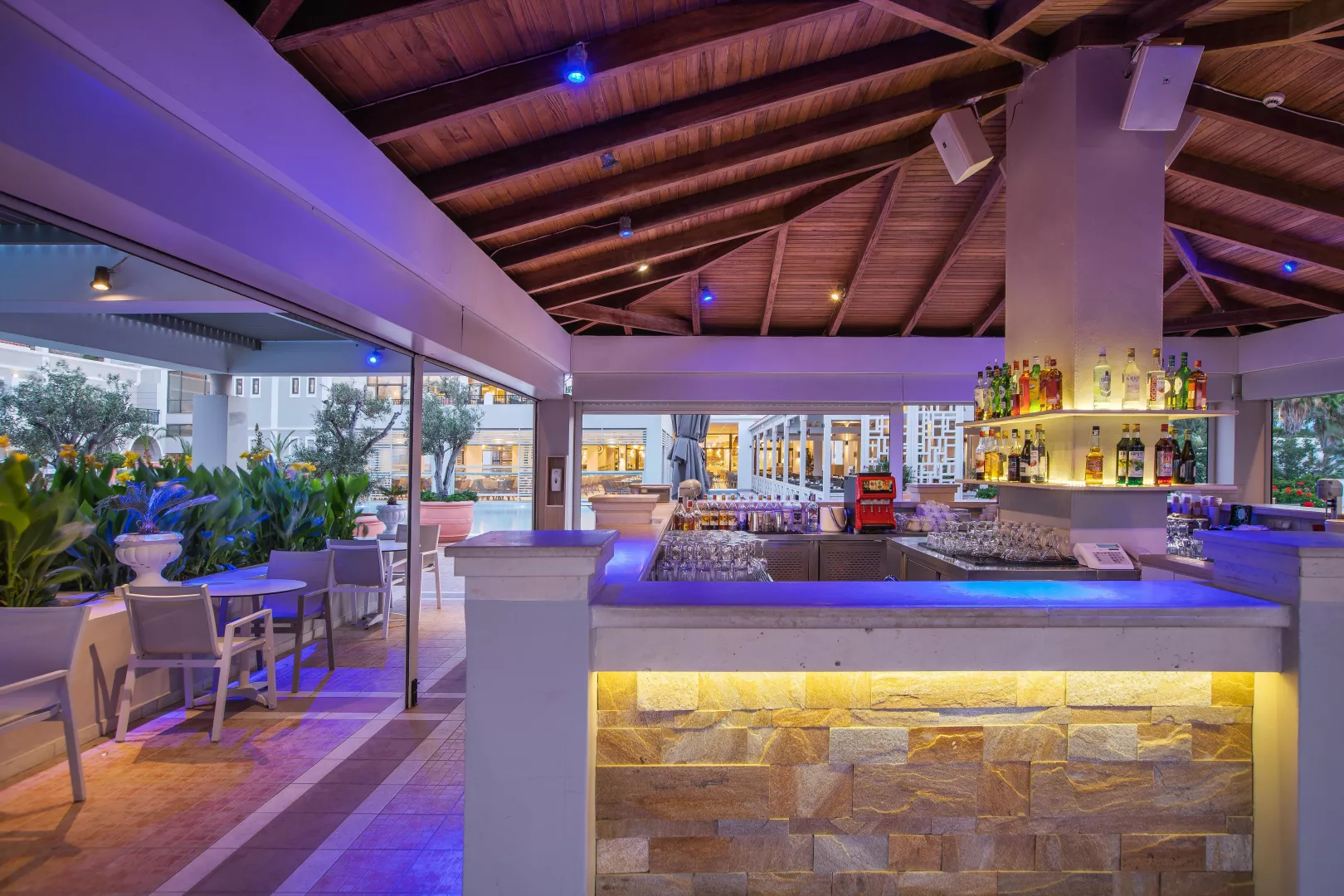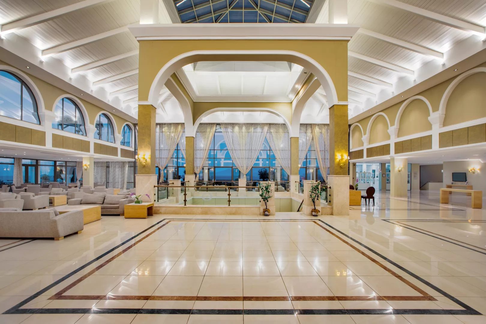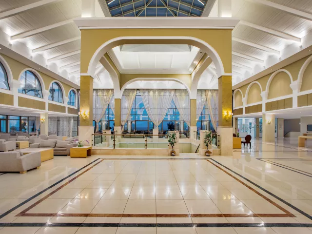 418 izieb a suite, hlavná budova a niekoľko vedľajších budov, vstupná hala s recepciou, hlavná reštaurácia, tematické reštaurácie (stredomorská, talianska, grécka a burgeráreň), bary, minimarket, spoločenská miestnosť, konferenčná miestnosť. Vonku 13 bazénov s morskou vodou, bazén pre deti so šmykľavkami s morskou vodou, vonkajšie jacuzzi. Terasy na slnenie, lehátka, slnečníky a osušky zdarma, bar pri bazéne.