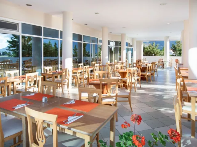 All Inclusive Raňajky formou bufetu so show cooking /varenie pred hosťami/ v hlavnej reštaurácii (07.30-10.00 hod.) Obed formou bufetu so show cooking /varenie pred hosťami/ v hlavnej reštaurácii (12.15-14.15 hod.) Večera formou bufetu v hlavnej reštaurácii so show cooking /varenie pred hosťami/, tematické večery a pizza kútik (19.00-21.00) Snack bar v taverne - hamburgery, hranolky, souvlaki, gyros a šalát (10.00-17.00) Snack bar pri bazéne - rôzne sladké a slané pečivo, zmrzlina, sladké a slané palacinky čerstvo pripravené (10.00-17.00) Nealkoholické a alkoholické vybrané nápoje miestnej výroby (10.00-24.00) Jedlá a nápoje aj pre hostí so špeciálnymi diétami alebo alergiami (bezlepkové, bezlaktózové, bez cukru, vegetariánske a vegánske) Bar pri bazéne (10.00-18.00) Taverna bar (10.00-17.00) Počas večere sa vyžaduje formálne oblečenie