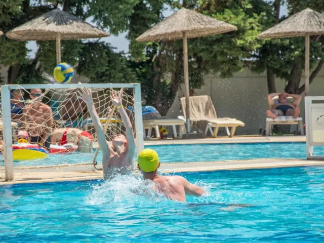 2 tenisové kurty volejbalové ihrisko minifutbalové ihrisko stolný tenis šípky vodné pólo denný a večerný animačný program minidiskotéka