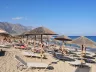 piesočnatá pláž zhruba 30 m od hotela oddelená cestnou komunikáciou ležadlá a slnečníky zadarmo