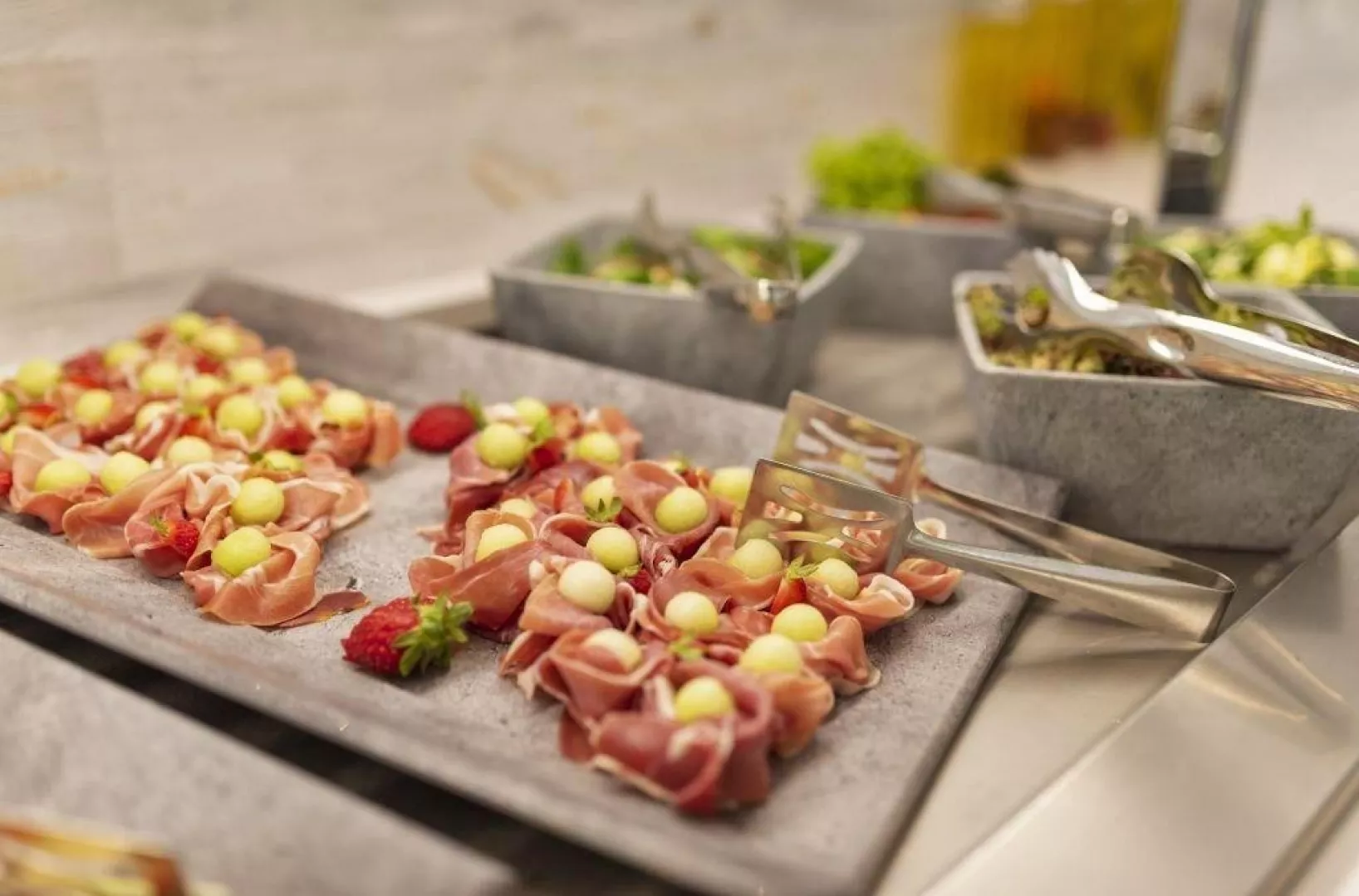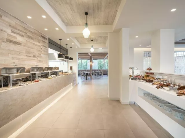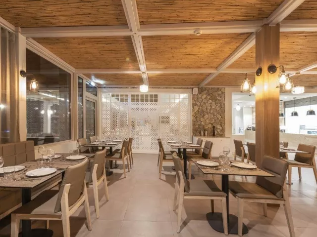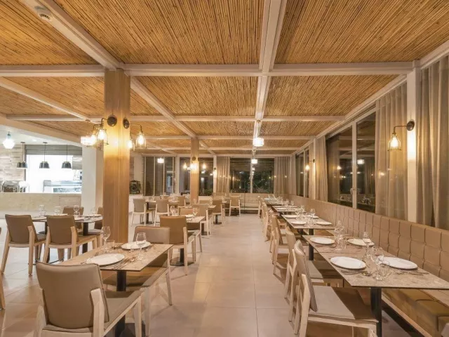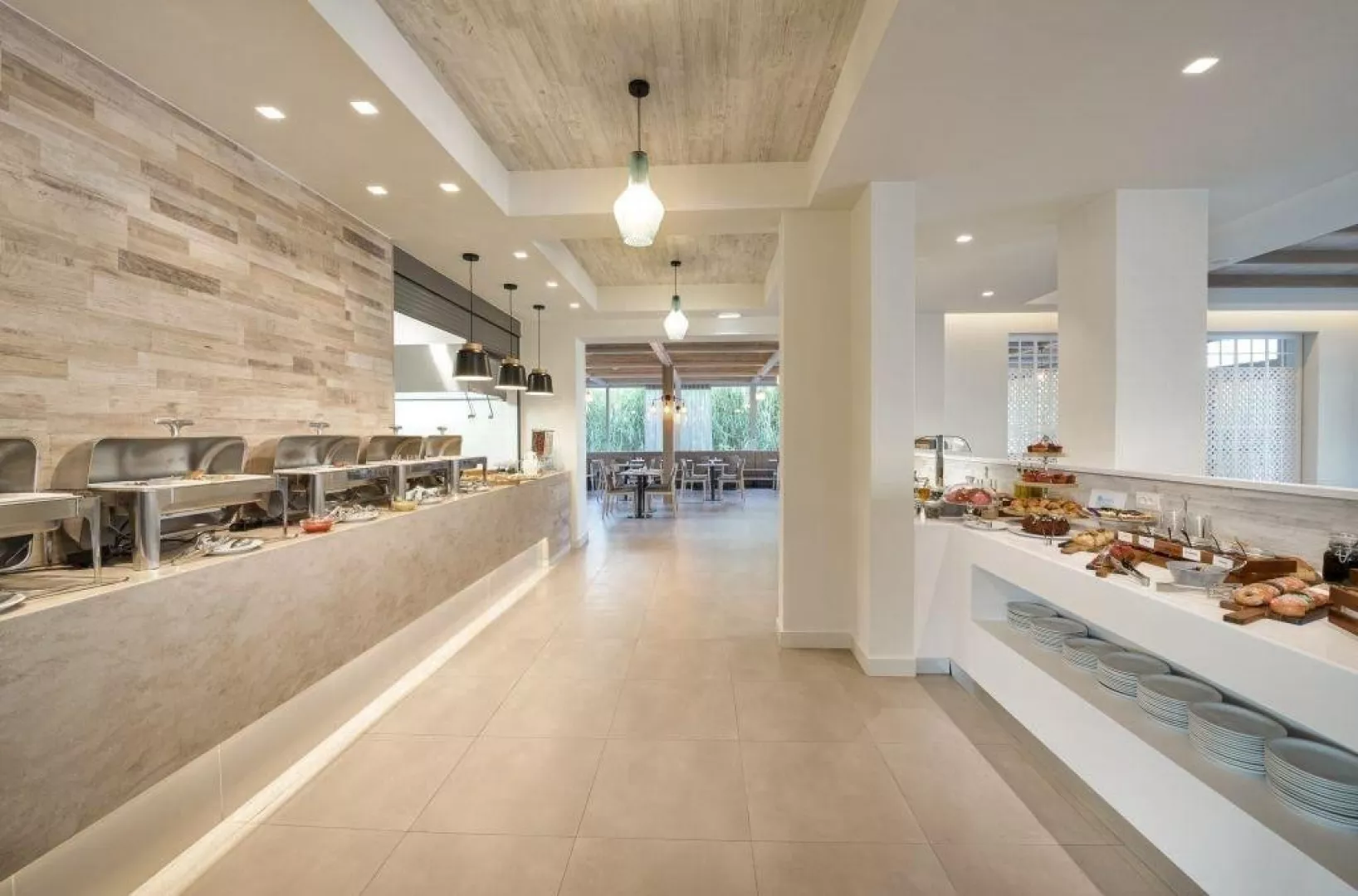 Ponuka zahŕňa raňajky formou bufetových stolov a možnosť polpenzie s večerami á la carte. Nápoje sú za poplatok a je možné sa stravovať aj v blízkych reštauráciách a tavernách.
