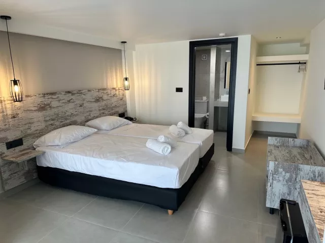 Dvojlôžkové izby zariadené moderným nábytkom sú vybavené kúpeľňou, WC, sušičom vlasov, TV/sat, klimatizáciou, trezorom (za poplatok), mini chladničkou a balkónom alebo terasou.