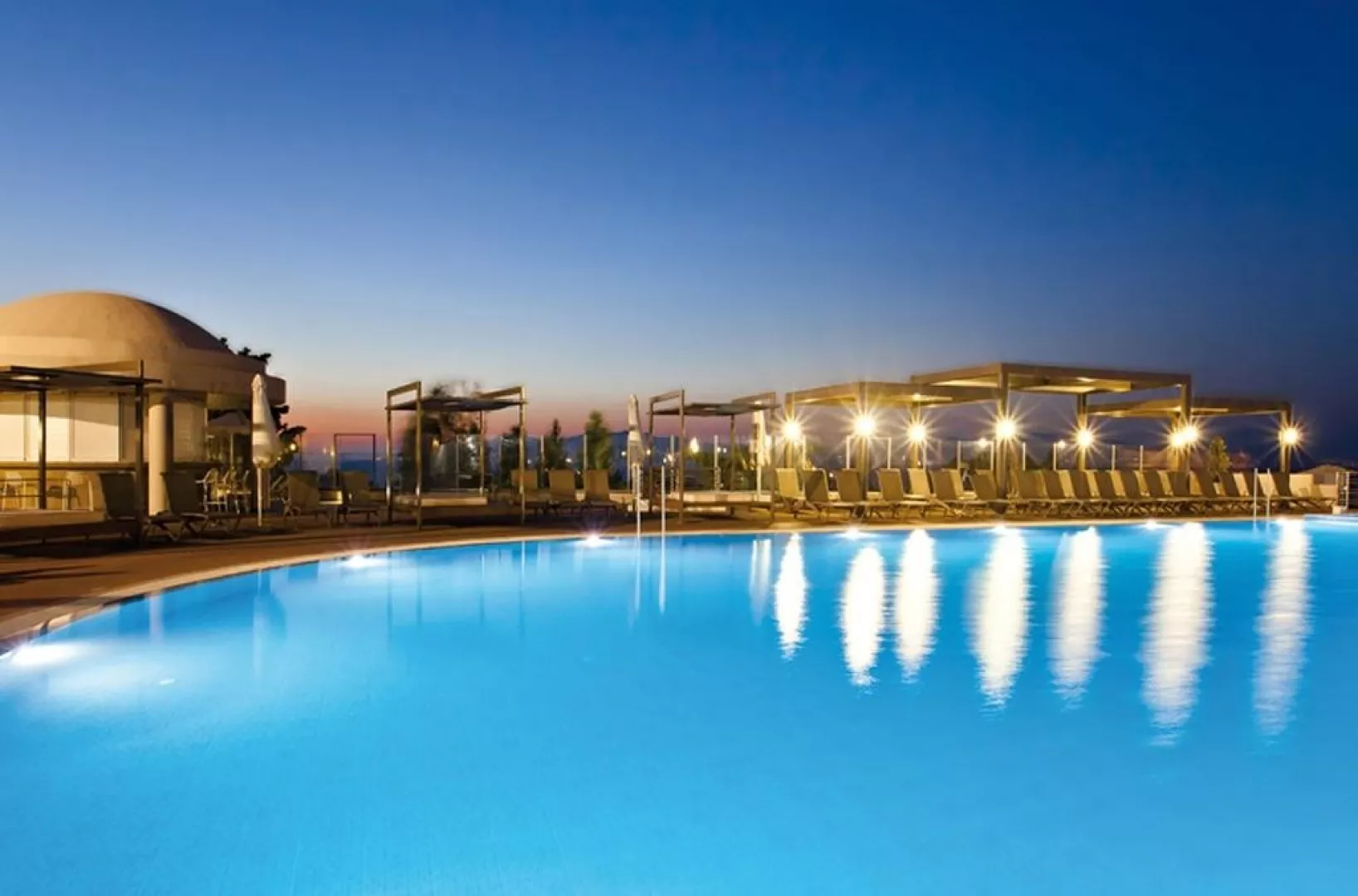 Medzi hlavné vybavenie patrí elegantná vstupná hala s recepciou, hlavná hotelová reštaurácia Ariadne, 4 á la carte reštaurácie (Fish & More, Souvlaki & More, Pizza & More, Triton Med Cuisine), lobby bar, pool bar Nireus, bar na pláži a Sky bar (za príplatok). Hotel disponuje aj hlavným bazénom, detským bazénom, bazénom s vírivkou, wellness centrom, fitness, tenisovým kurtom a rôznymi športovými aktivitami. Wifi pripojenie je dostupné v celom areáli hotela.