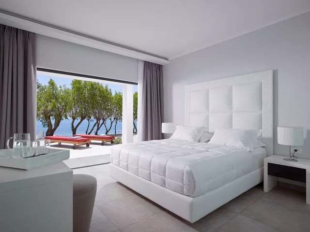 Izby sú priestranné a komfortne zariadené. Ponúkajú dve varianty: dvojlôžkovú izbu s výhľadom do záhrady alebo na more, izbu so zdieľaným bazénom, rodinnú izbu a Suite Executive s výhľadom do záhrady. Vybavenie zahŕňa kúpeľňu/WC, klimatizáciu, LCD TV/sat., telefón, minibar, trezor a balkón alebo terasu.