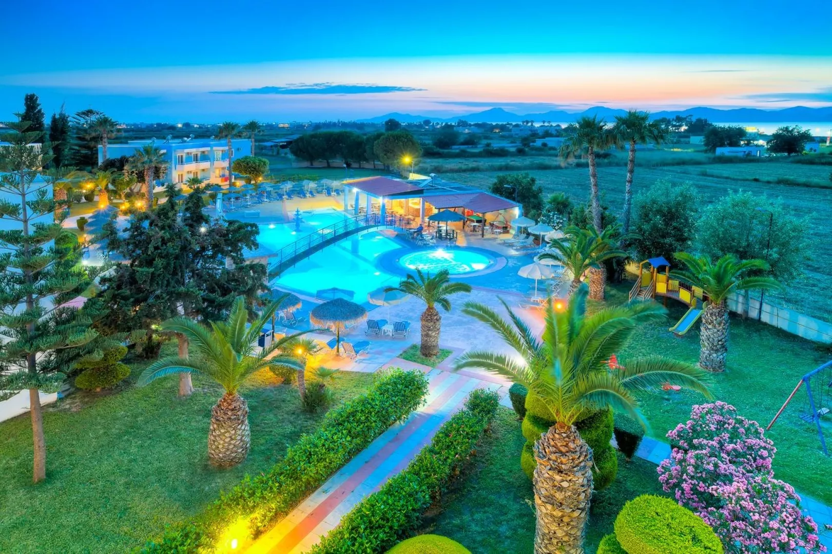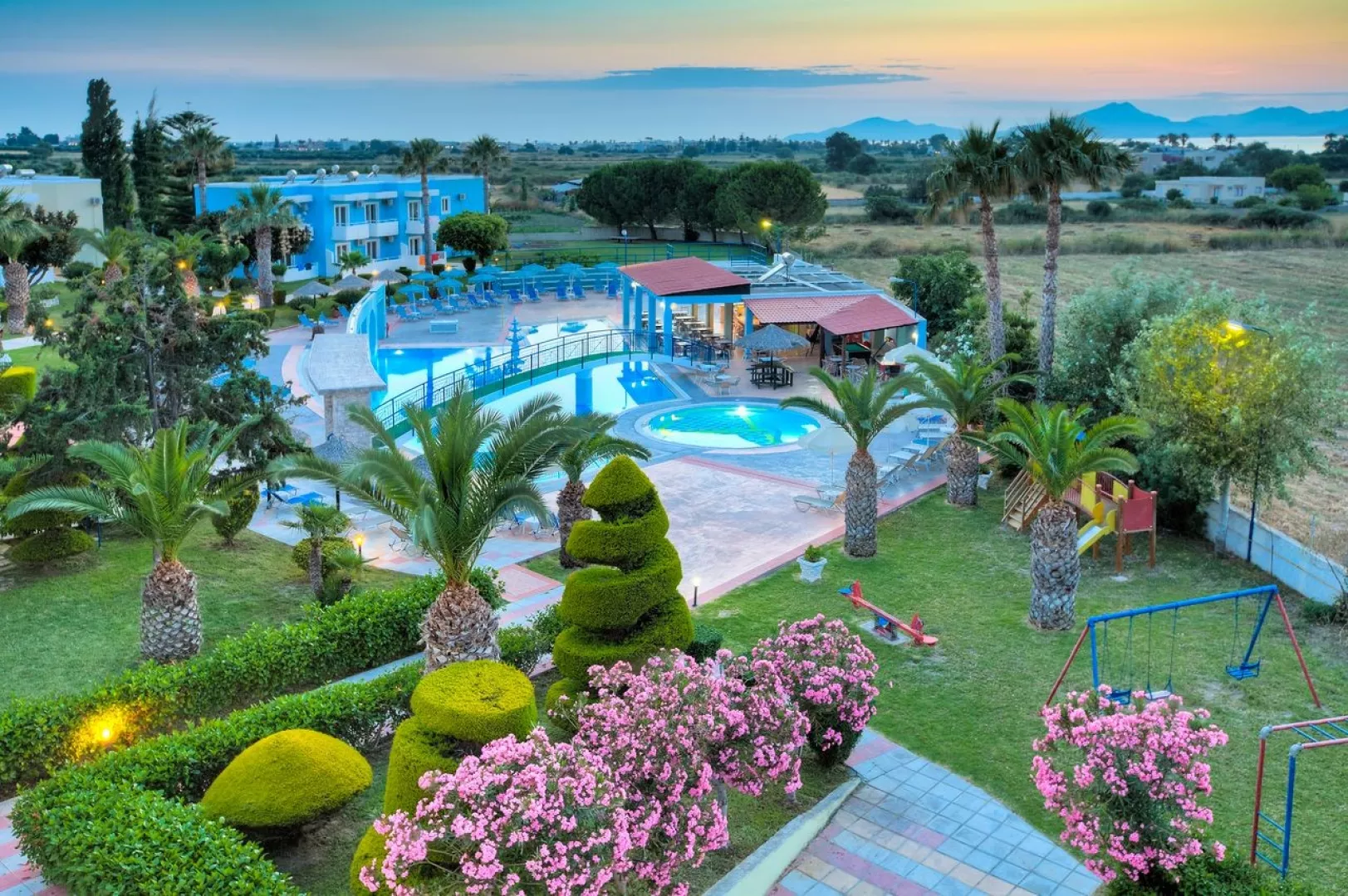 Hotel Corali kombinuje grécku pohostinnosť s moderným štýlom. Je obklopený sviežimi záhradami a bazénmi, ponúkajúci pokojné prostredie na objavovanie krásy ostrova. Hotel sa nachádza 2 km od centra strediska Tigaki s barmi a obchodmi a 10 km od mesta Kos.