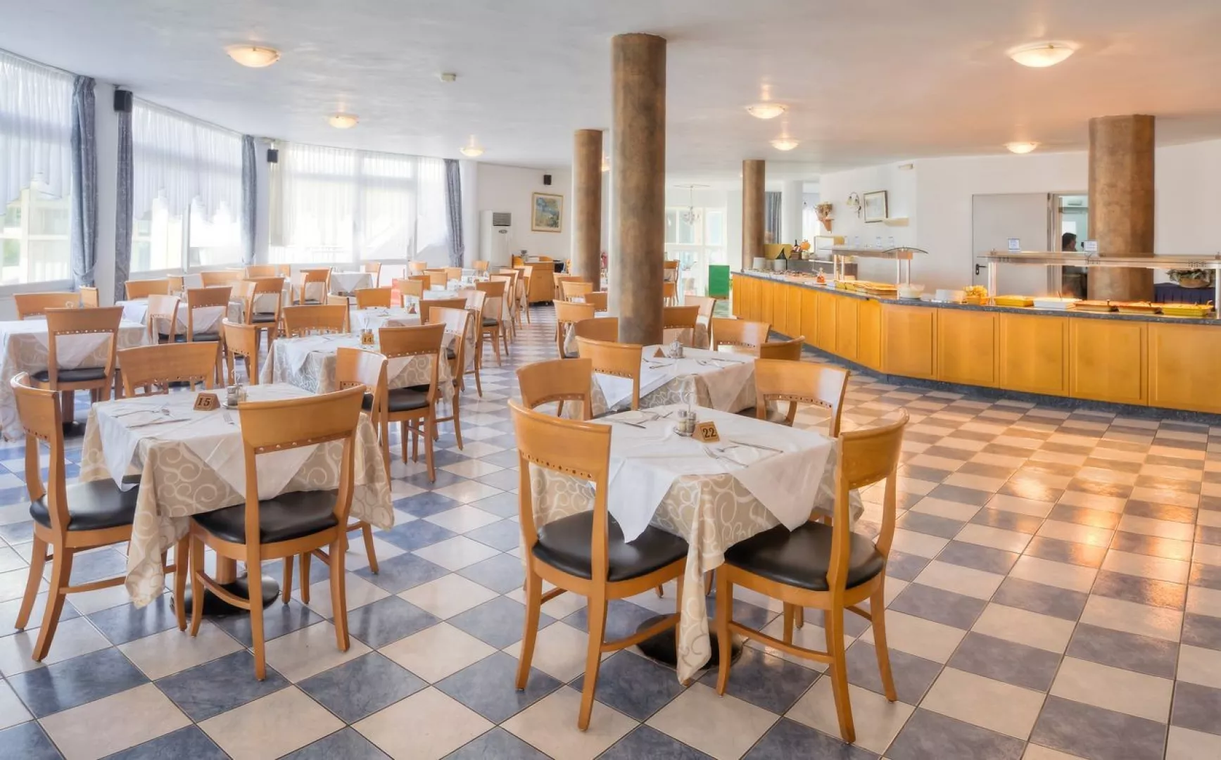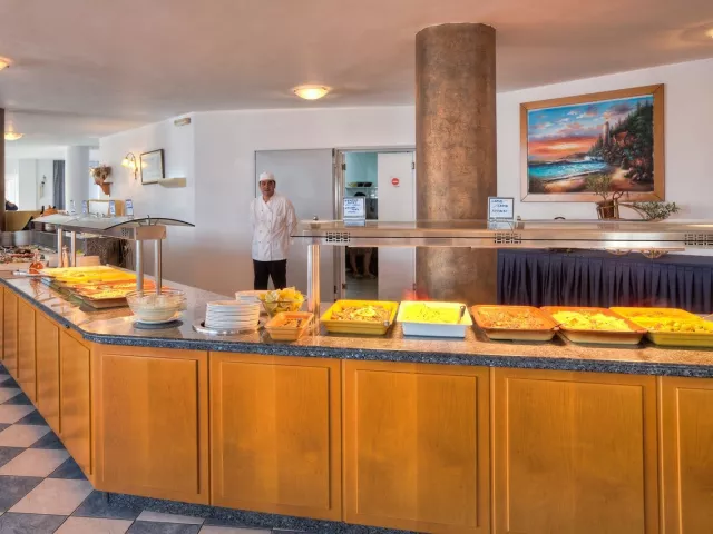 Hotel ponúka polpenziu s raňajkami a večerami formou bufetu. Raňajky sú podávané od 07.00 do 09.30 hod., ľahký obed od 12.30 do 14.00 hod. a večera od 18.30 do 21.30 hod. Nealkoholické a alkoholické nápoje miestnej výroby sú k dispozícii od 10.00 do 23.00 hod. s popoludňajšou kávou a chutnými dezertami.