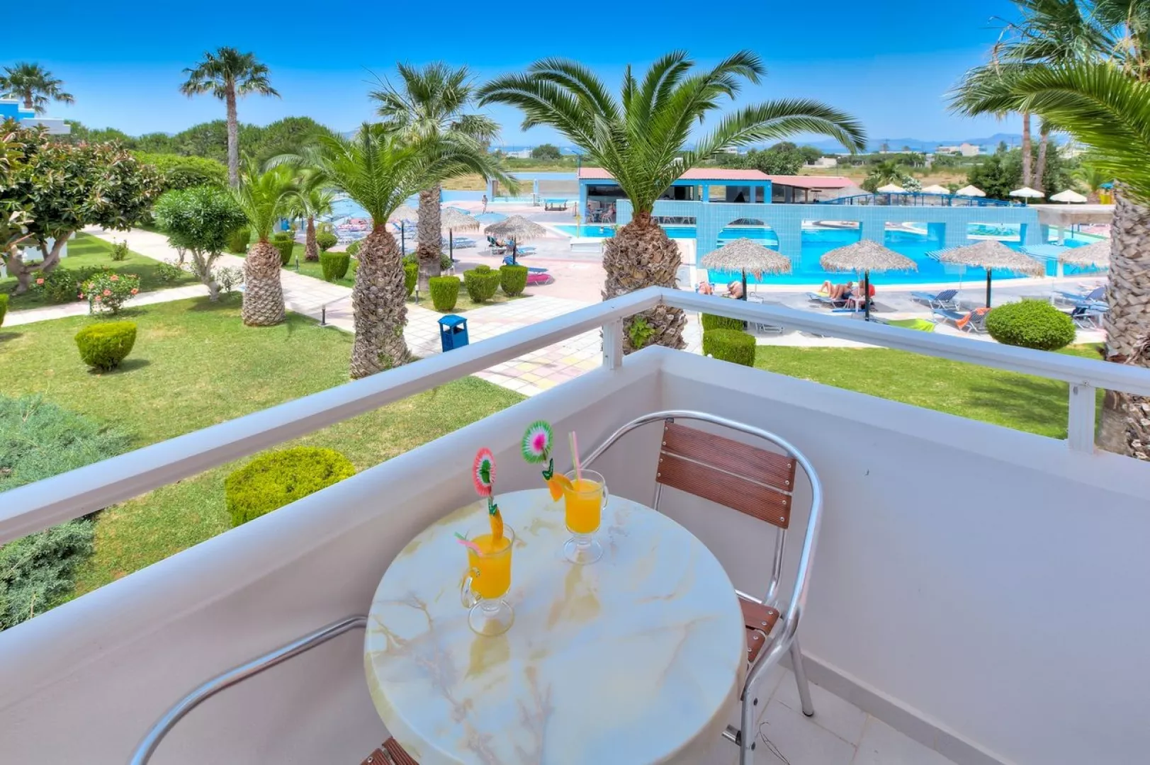 Dvojlôžková izba s výhľadom na záhradu zahŕňa kúpeľňu/WC, centrálnu klimatizáciu (1. 6. – 15. 9., v určených hodinách), TV/sat., minichladničku, telefón a trezor (za poplatok). V ponuke sú aj apartmány s obývacou izbou a oddelenou spálňou rôznych výhľadov s individuálnou klimatizáciou počas celej sezóny. Rodinné izby sú priestrannejšie s výhľadom na bazén alebo záhradu.