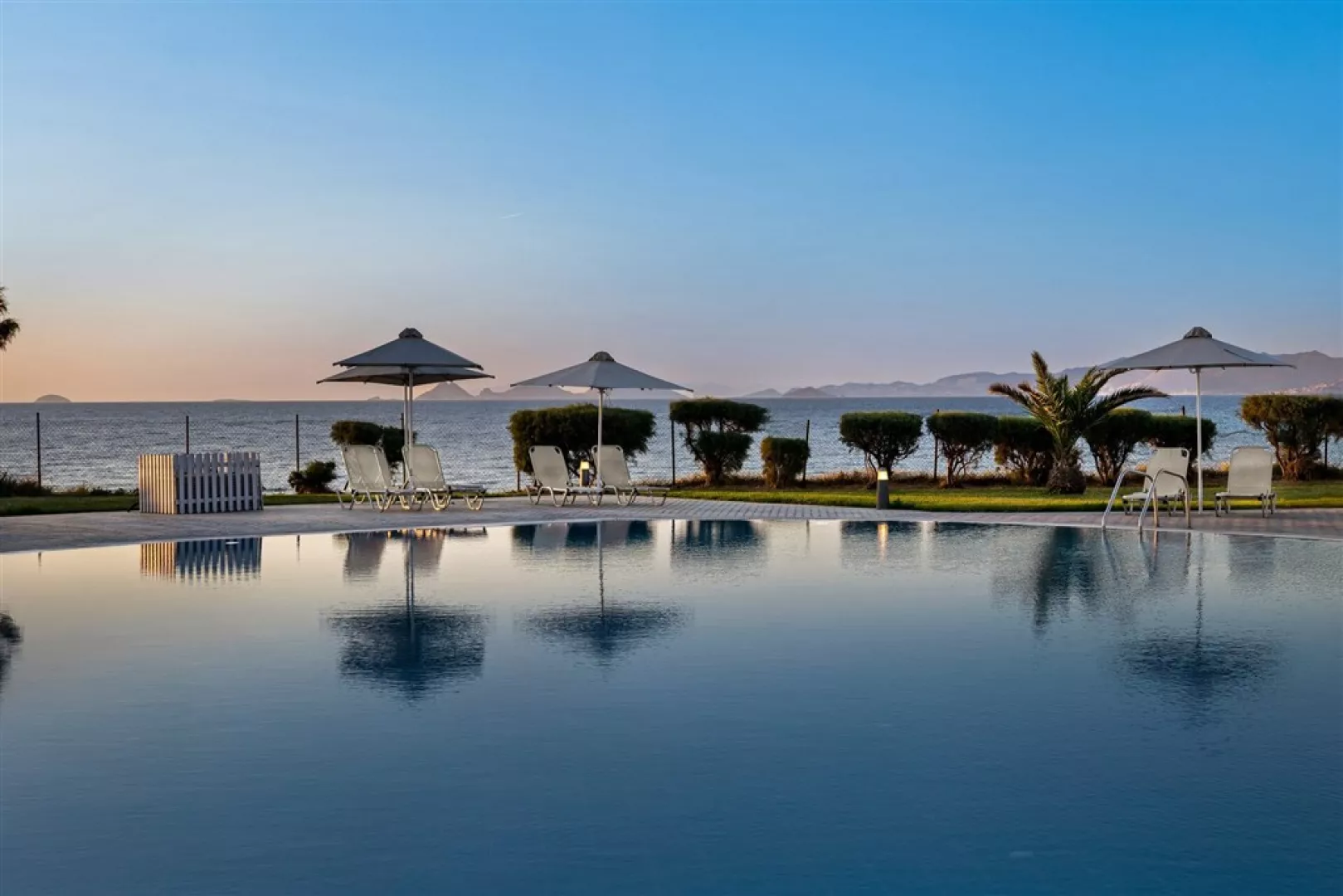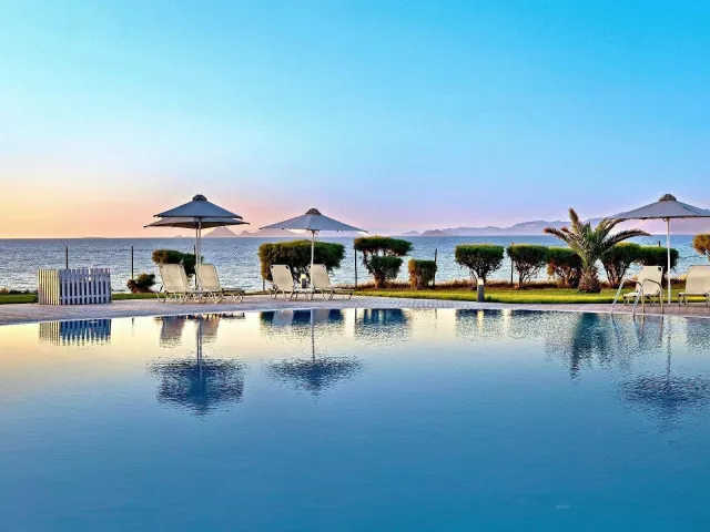 Hotel sa nachádza priamo pri pláži, s ďalšou piesočnou plážou Karnagio len 5 minút pešo. Nákupné možnosti sú dostupné vo vzdialenosti 2 km, zatiaľ čo hlavné mesto Kos je 6 km od hotela. Autobusová zastávka je cca 100 m od rezortu.