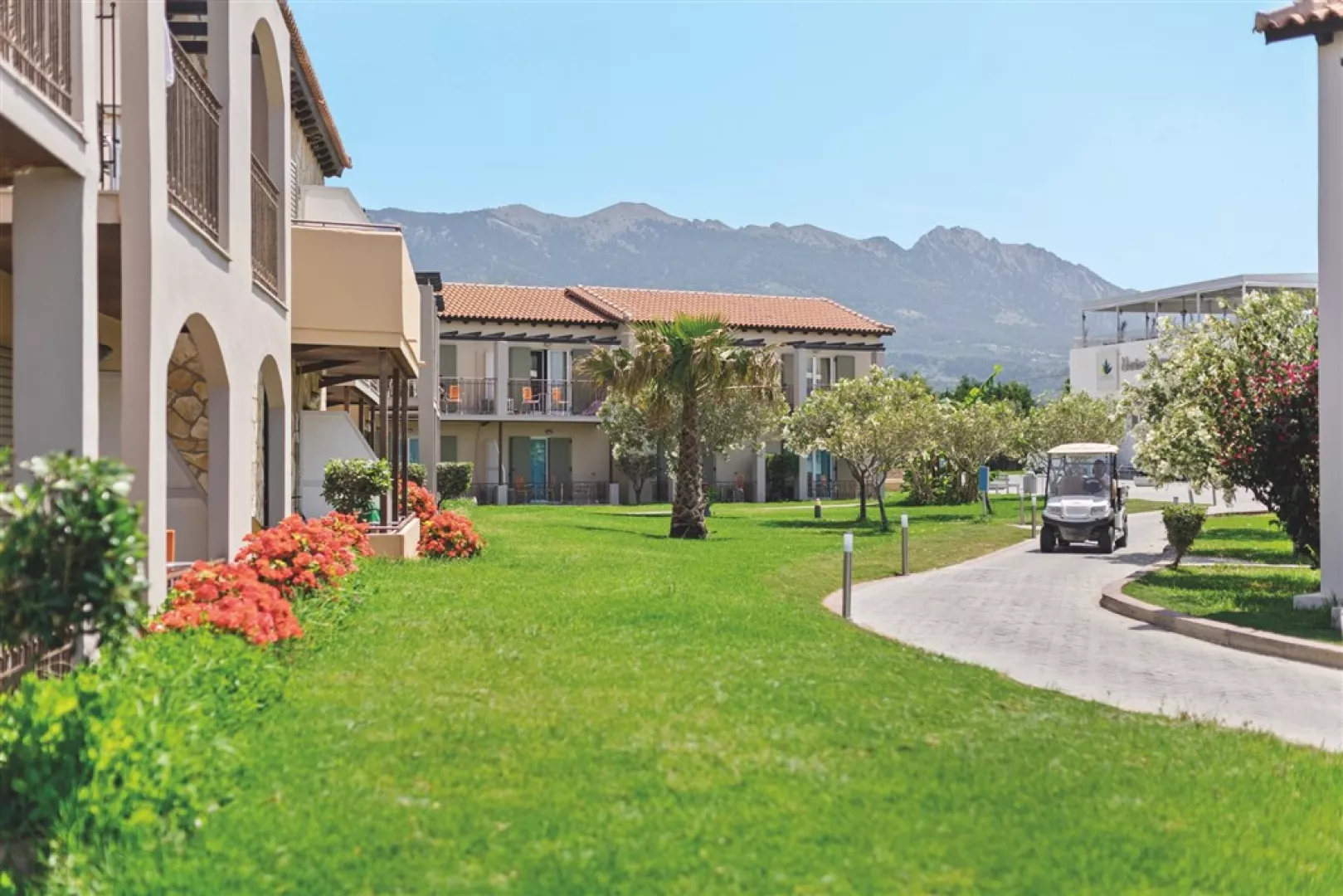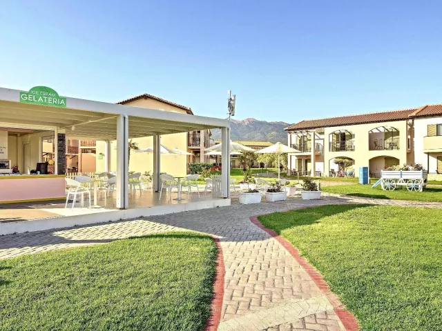 Tento rezort, zrekonštruovaný v roku 2022, ponúka skvelé podmienky pre rodinnú dovolenku plnú pohody a zážitkov. Nachádza sa v udržiavanej záhrade a pozostáva z hlavnej budovy a 21 dvojpodlažných domov. V hoteli je recepcia, lobby bar, reštaurácia, grécka a talianska taverna, supermarket či detské ihrisko. Rodiny si môžu užívať bazén s umelými vlnami a hotelový aquapark, kde sú dostupné aj šmykľavky. Dospelí ocenia relaxačné procedúry v kúpeľoch a možnosť vychutnať si nápoje v baroch.