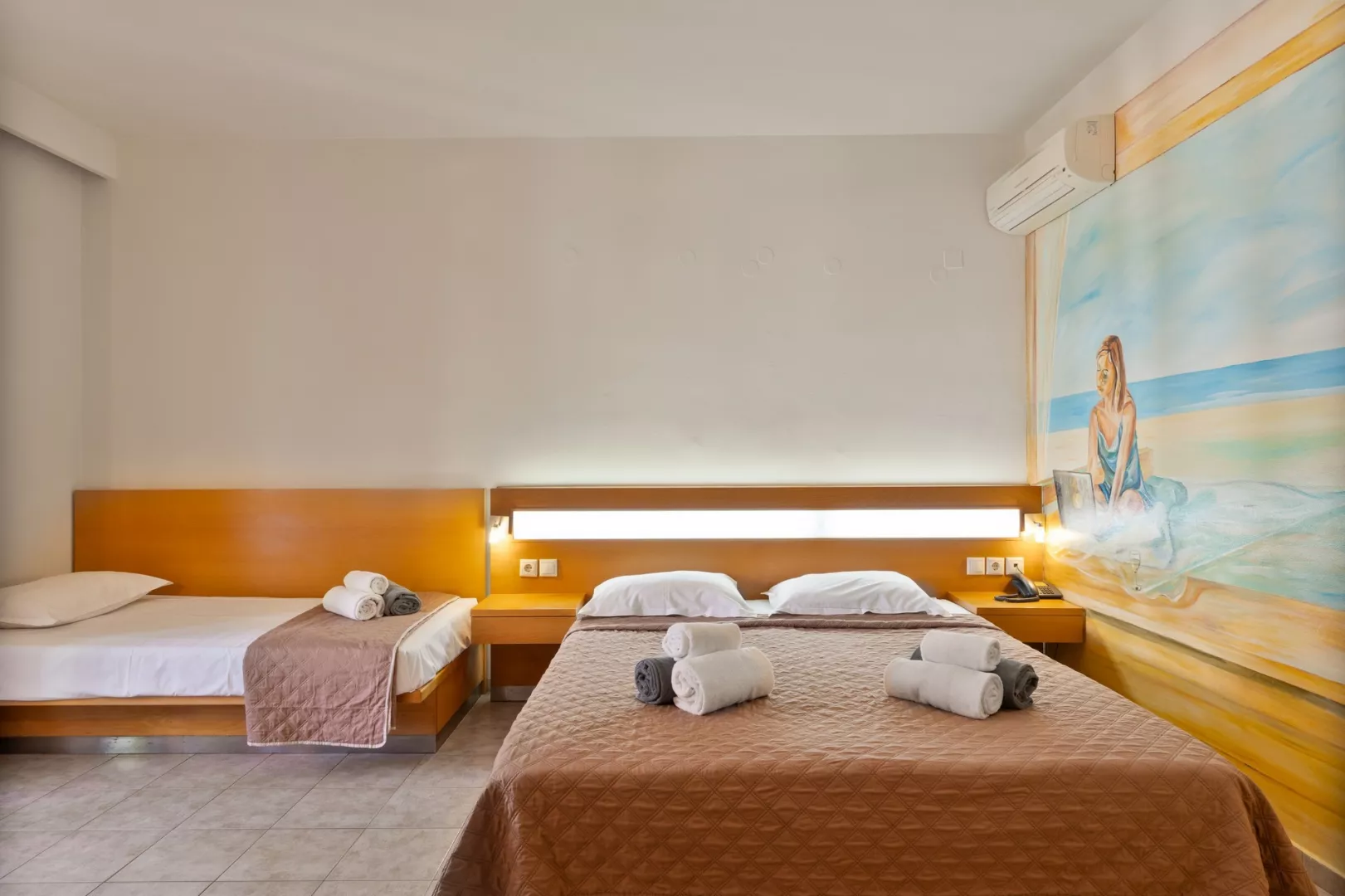 Štandardná izba je vybavená individuálnou klimatizáciou, kúpeľňou so sprchou a WC, telefónom, SAT/TV, minichladničkou, fénom, balkónom alebo terasou. Trezor je k dispozícii za poplatok a výhľad v izbách je na hory alebo čiastočne na more.