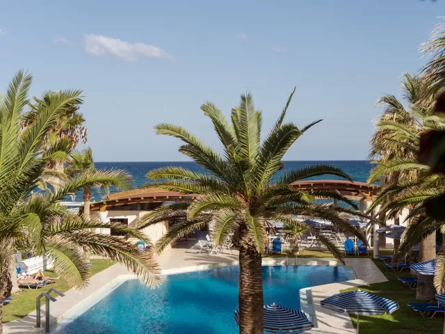 Príjemný hotel sa nachádza priamo pri piesočnatej pláži, iba 50 m od centra vodných športov. Najbližšie obchody a reštaurácie sú vzdialené len cez cestu, autobusová zastávka je približne 80 m od hotela. Rethymno je vzdialené 6 km a najbližšie letisko cca 80 km.