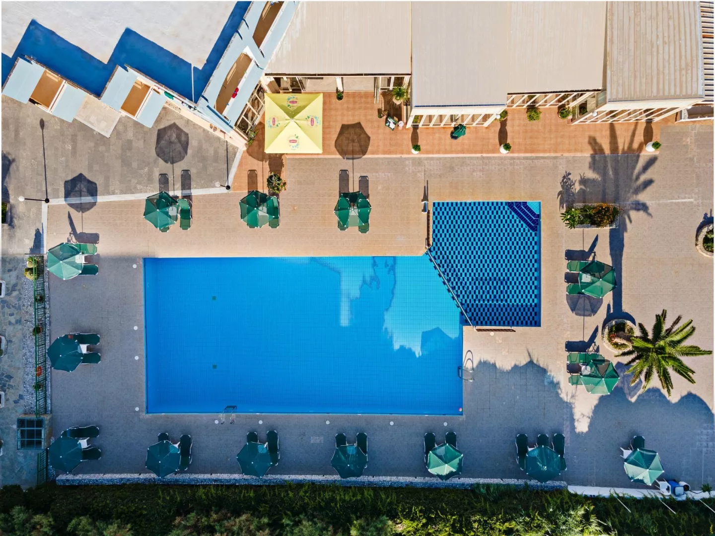 Hotel strednej kategórie, skladajúci sa z komplexu niekoľkoposchodových budov, sa nachádza priamo pri pláži v centre turistickej zóny Adelianos Kampos. Do centra Rethymna, vzdialeného približne 6 kilometrov, sa pohodlne dostanete miestnou dopravou alebo taxi službami. Hotel je vhodný pre rodiny s deťmi, ako aj pre tých, ktorí vyhľadávajú nočný život a príjemné prechádzky. Wi-Fi pripojenie je k dispozícii zadarmo na recepcii.