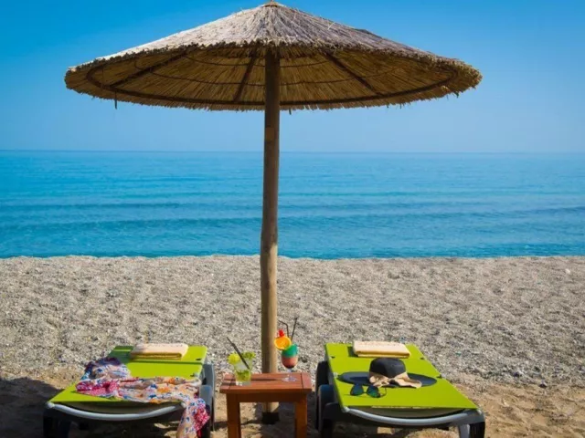 Hotel sa pyšní prístupom na verejnú piesočnato -kamienkovú pláž s pozvoľným vstupom do mora. Lehátka a slnečníky na pláži sú zdarma, a hotel navrhuje obuv do vody z dôvodu niektorých kamenistých miest pod vodou.